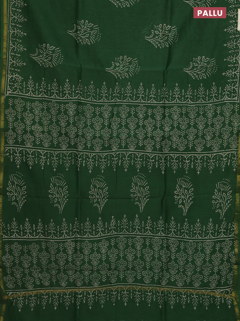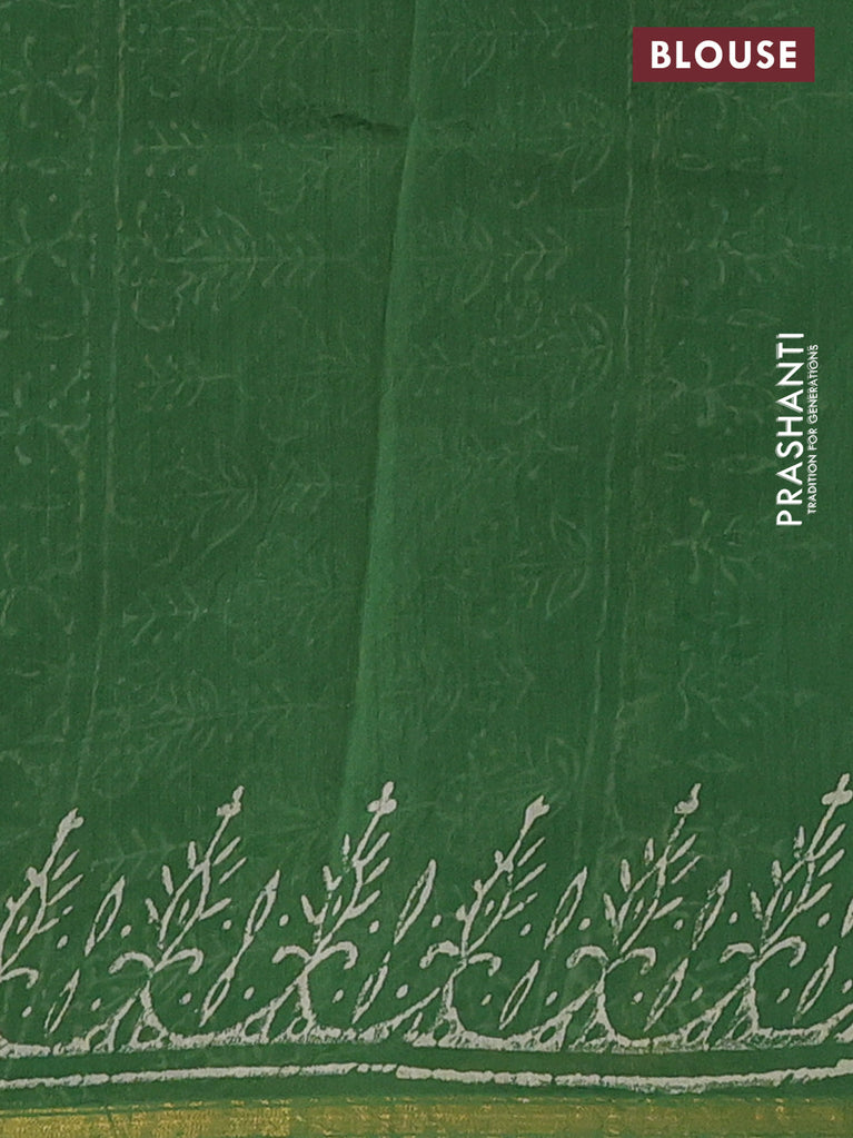 Chanderi bagru saree peacock green with allover prints and mageshwari border