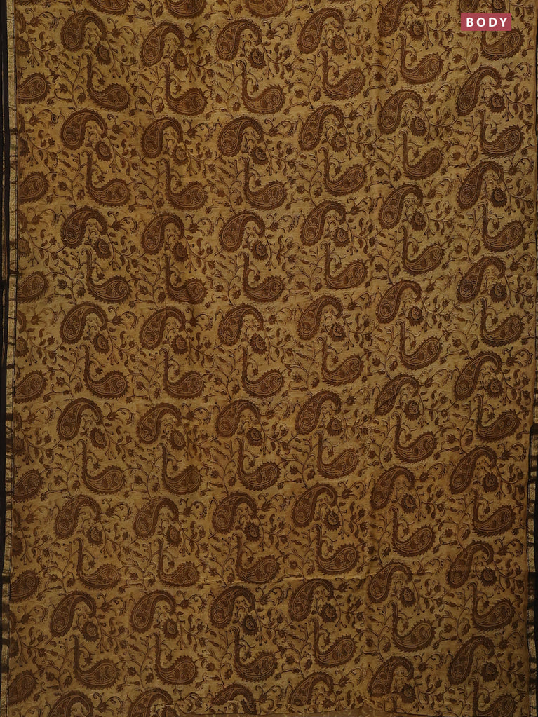 Chanderi bagru saree mustard shade and black with allover kalamkari prints and small zari woven border