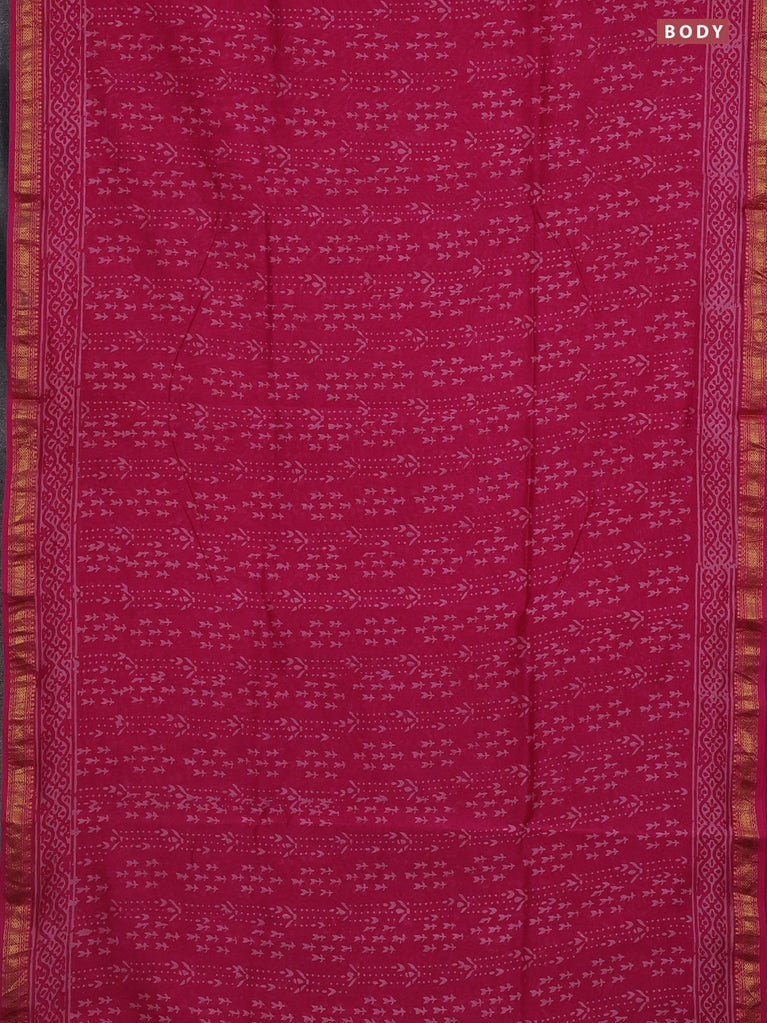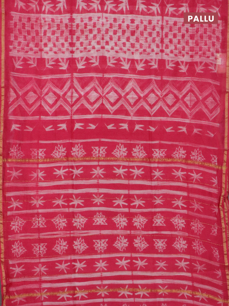 Chanderi bagru saree pink with allover prints and small zari woven border