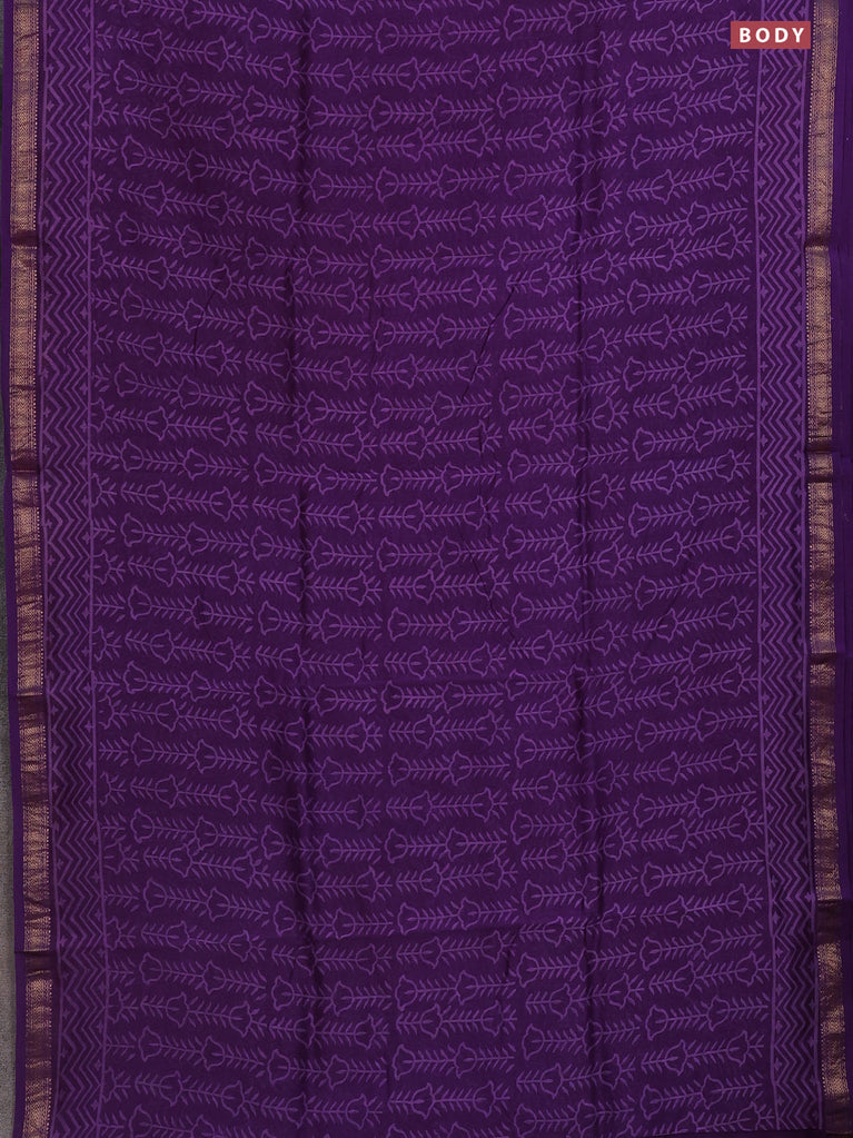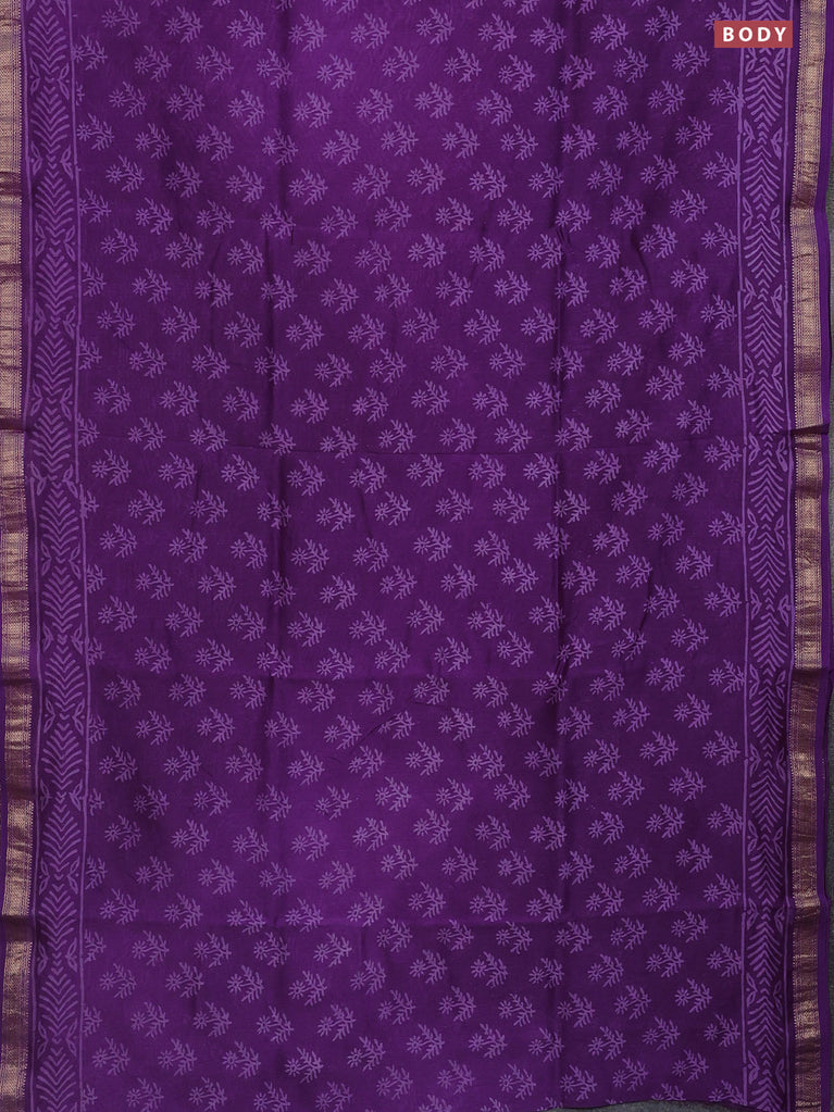 Chanderi bagru saree purple with allover prints and mageshwari border