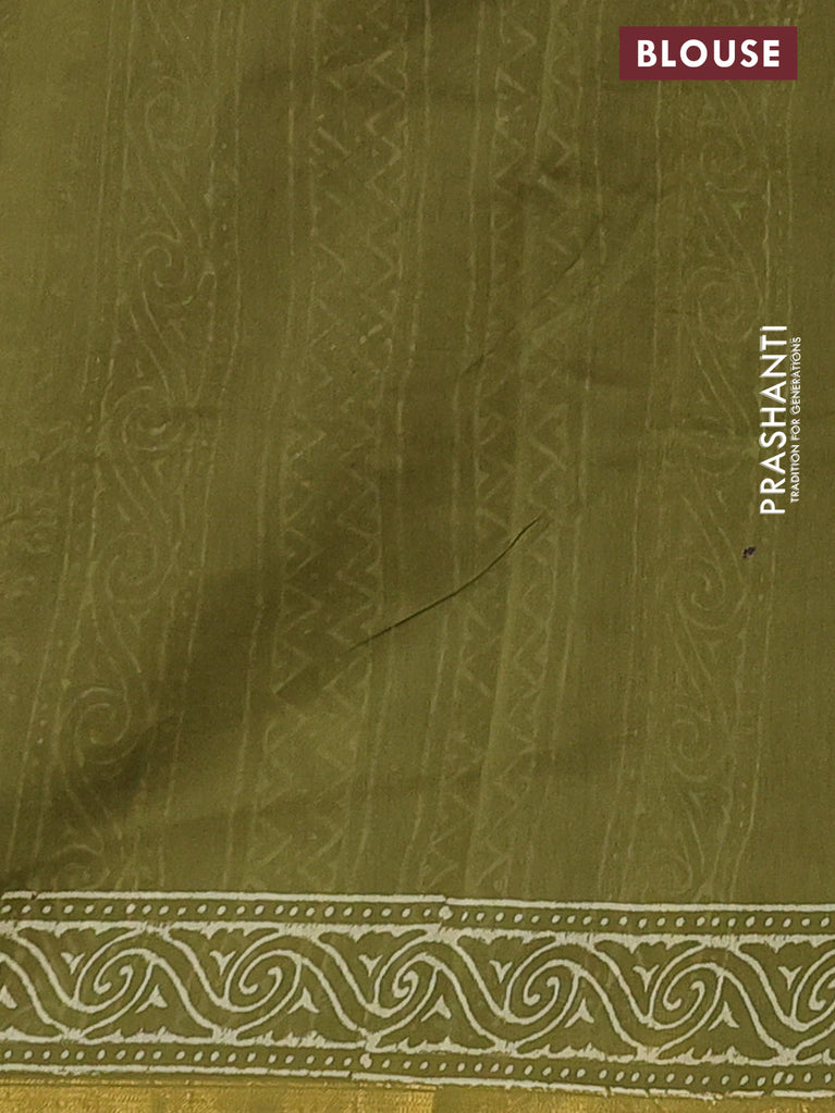 Chanderi bagru saree sap green with butta prints and small zari woven border