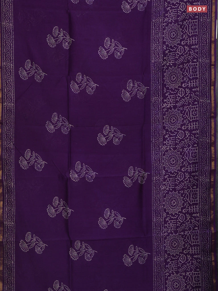 Chanderi bagru saree violet with floral butta prints and long printed zari border