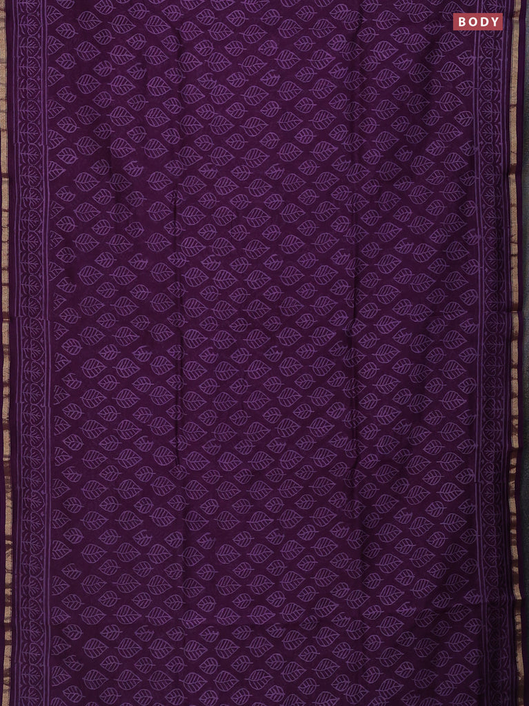 Chanderi bagru saree purple with allover leaf butta prints and small zari woven border