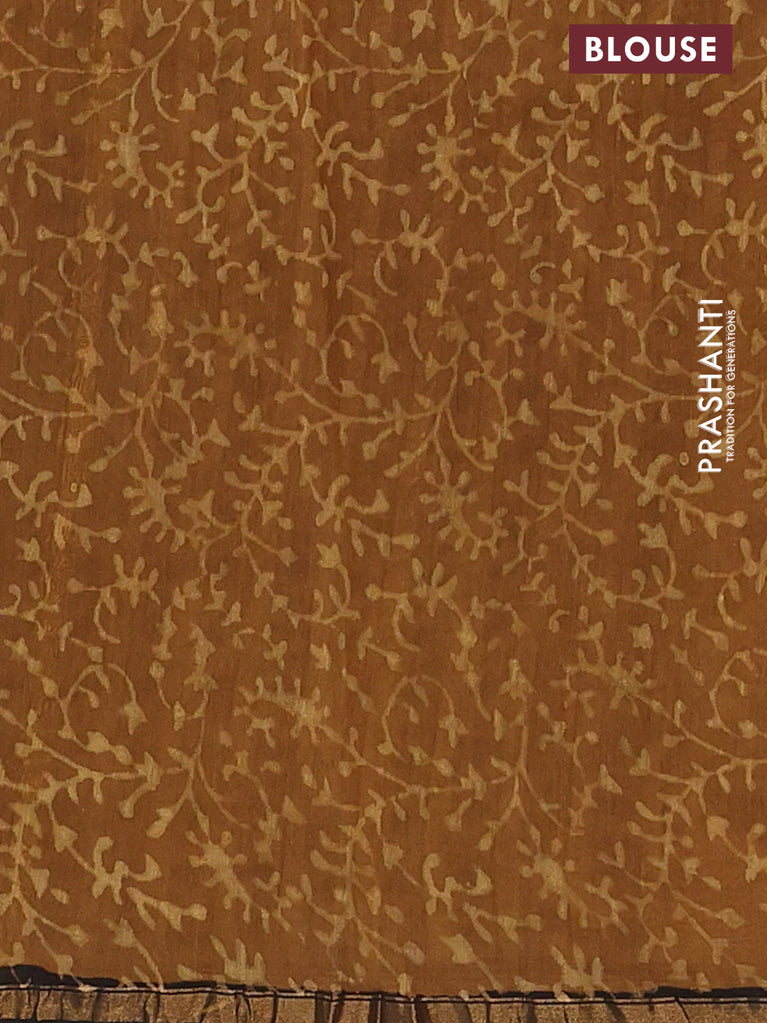 Chanderi bagru saree sandal and brown with allover floral butta prints and small zari woven border