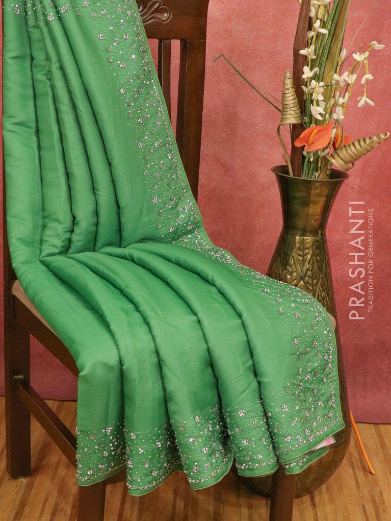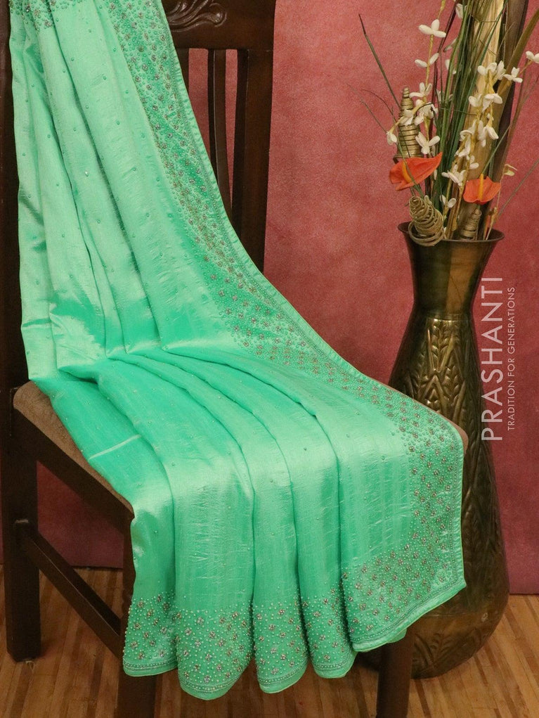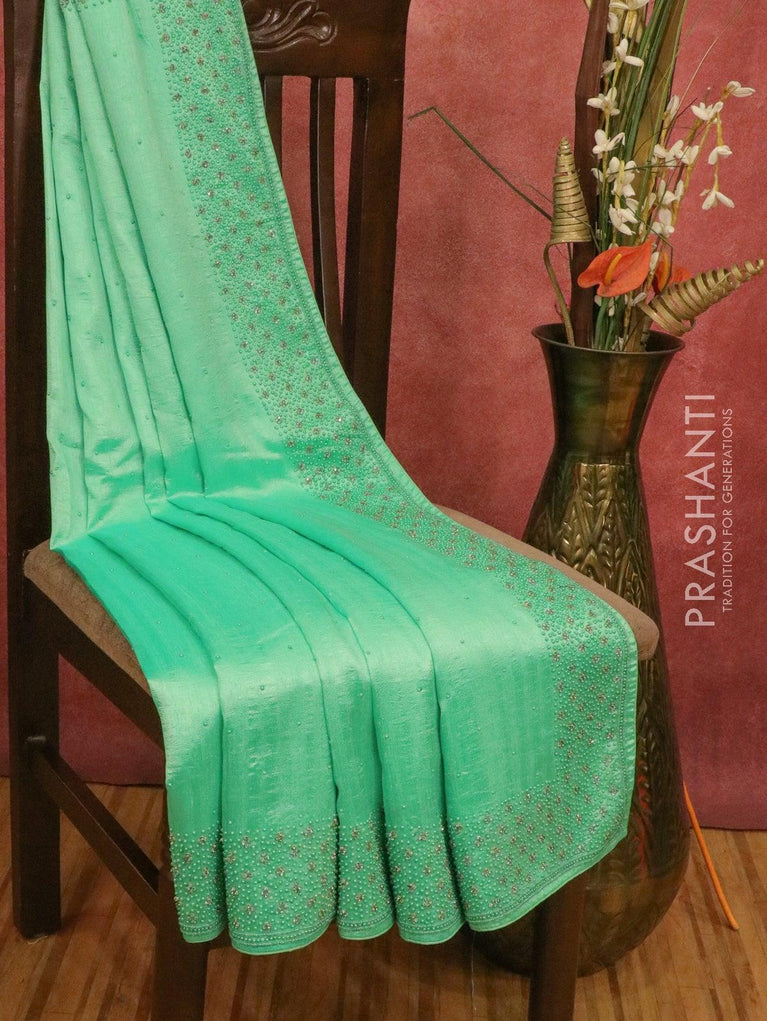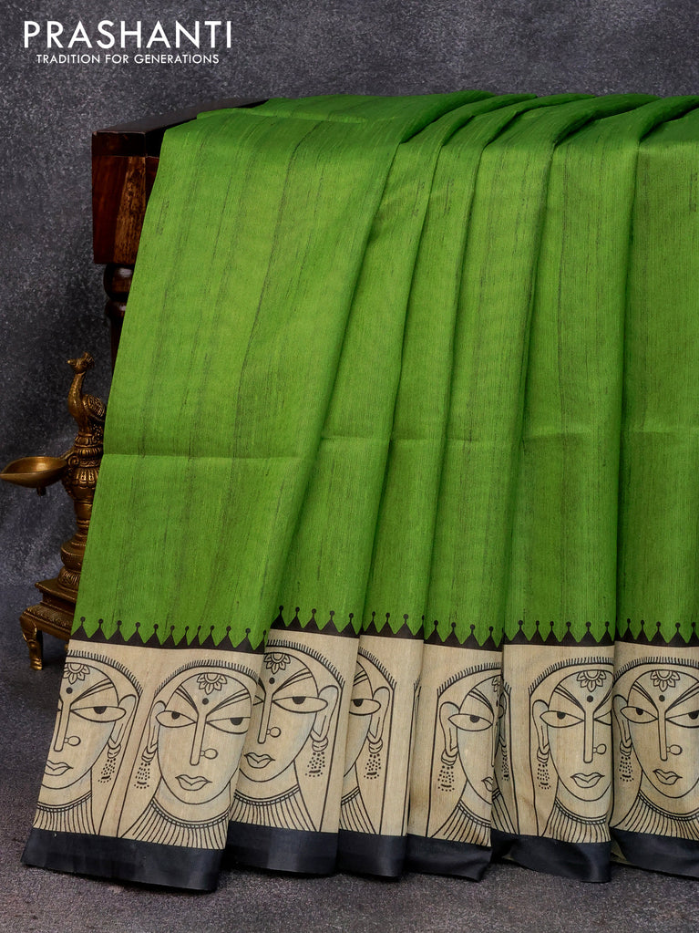 Chappa saree teal blue and cream with plain body and madhubani printed border