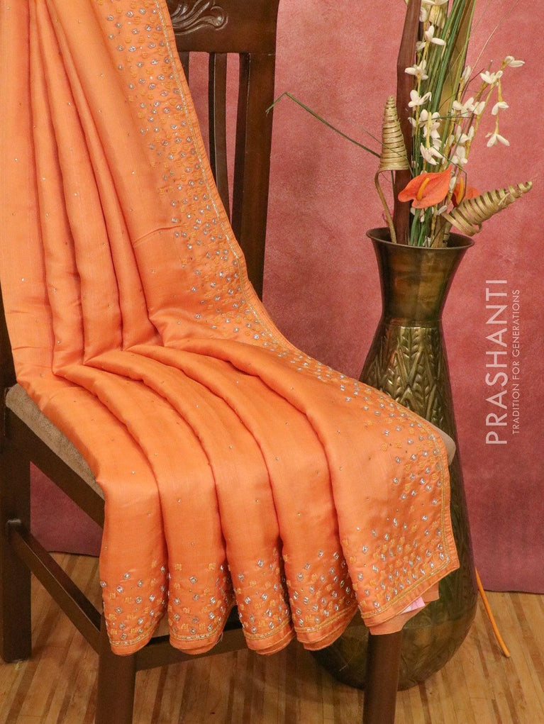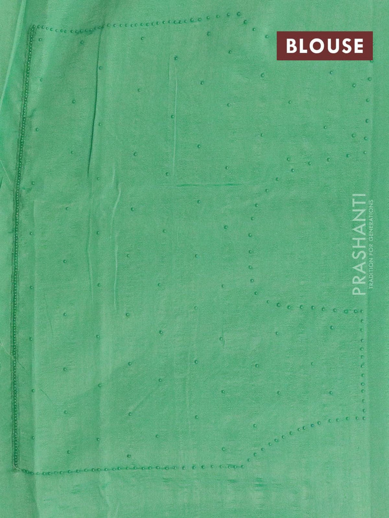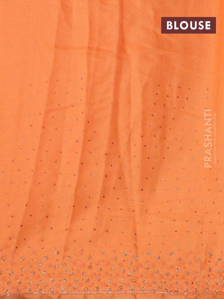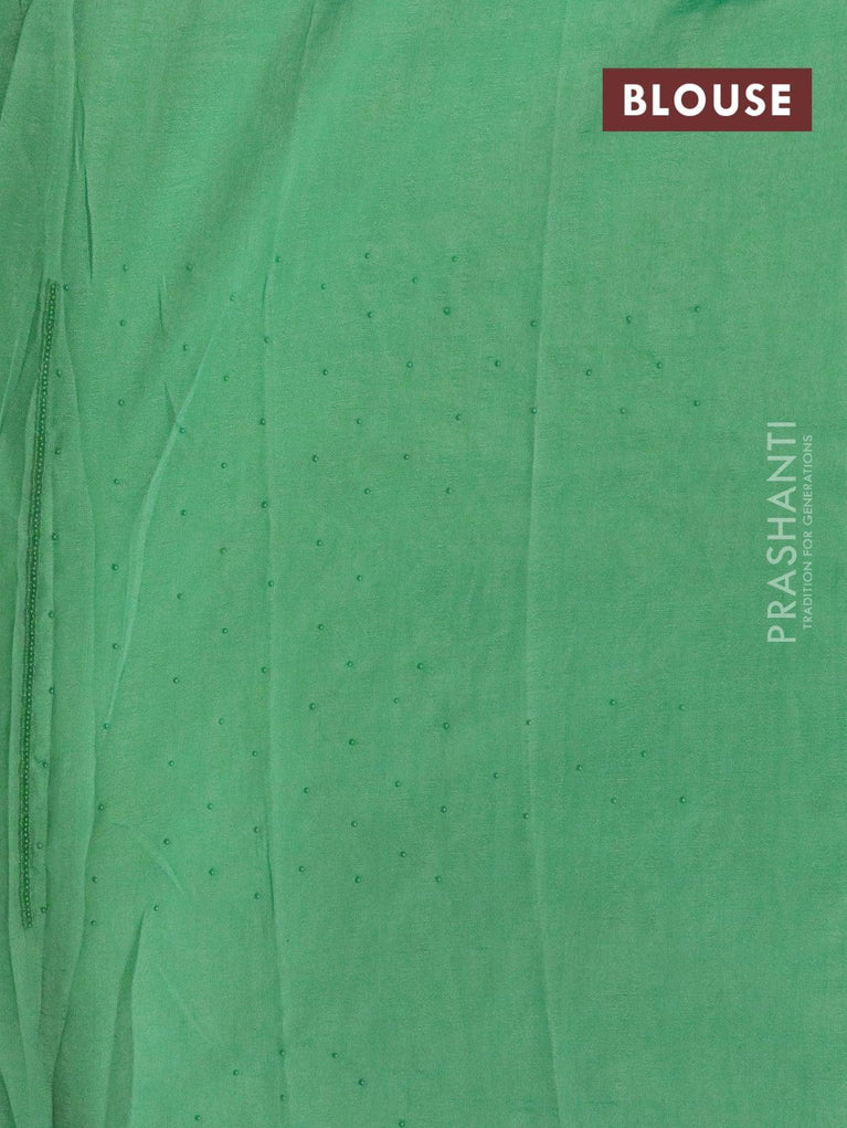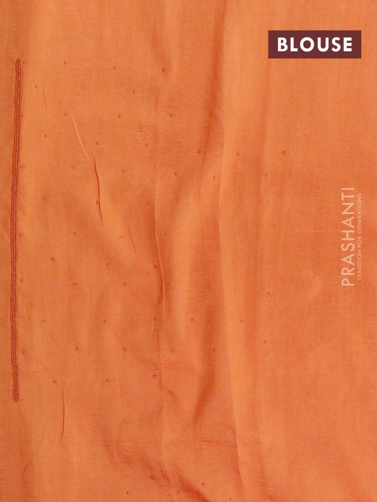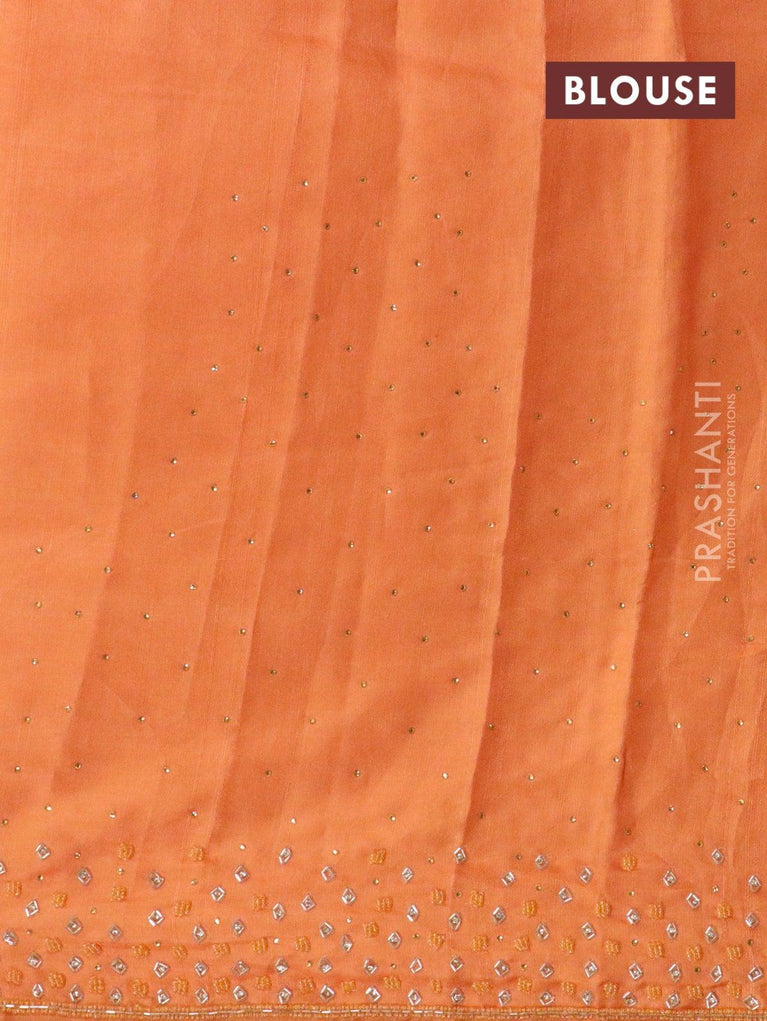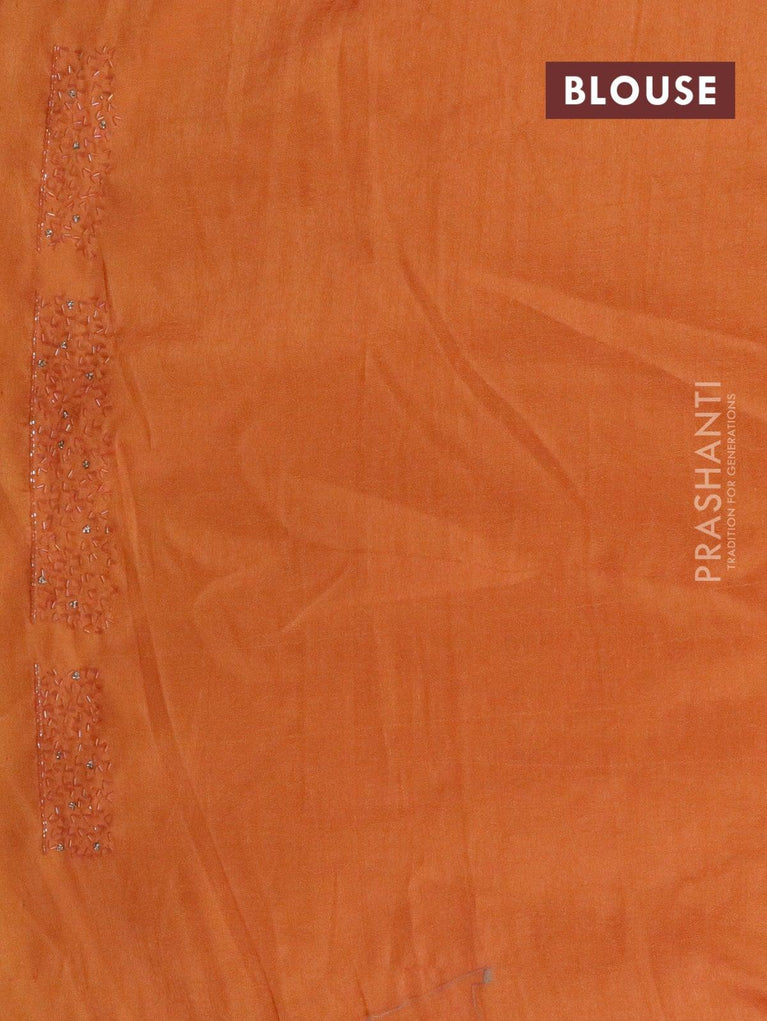 Light as air and as vibrant as a rainbow, organza silk is a fabric that exudes delicate grandeur. Woven with twisted silk yarn on the warp as well as the weft, this fabric is hailed for its slight transparency, and its slightly stiff and yet fluid texture. Its subtle sheen further adds to its charisma, making it the perfect fabric for both festive and formal occasions. This blouse features elaborate hand-embroidery by female artisans in West Bengal.