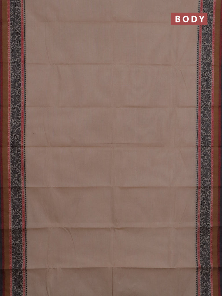 Chettinad cotton saree beige and black with plain body and thread woven border