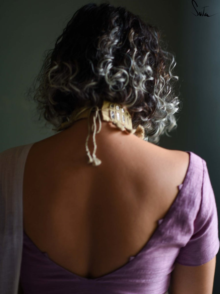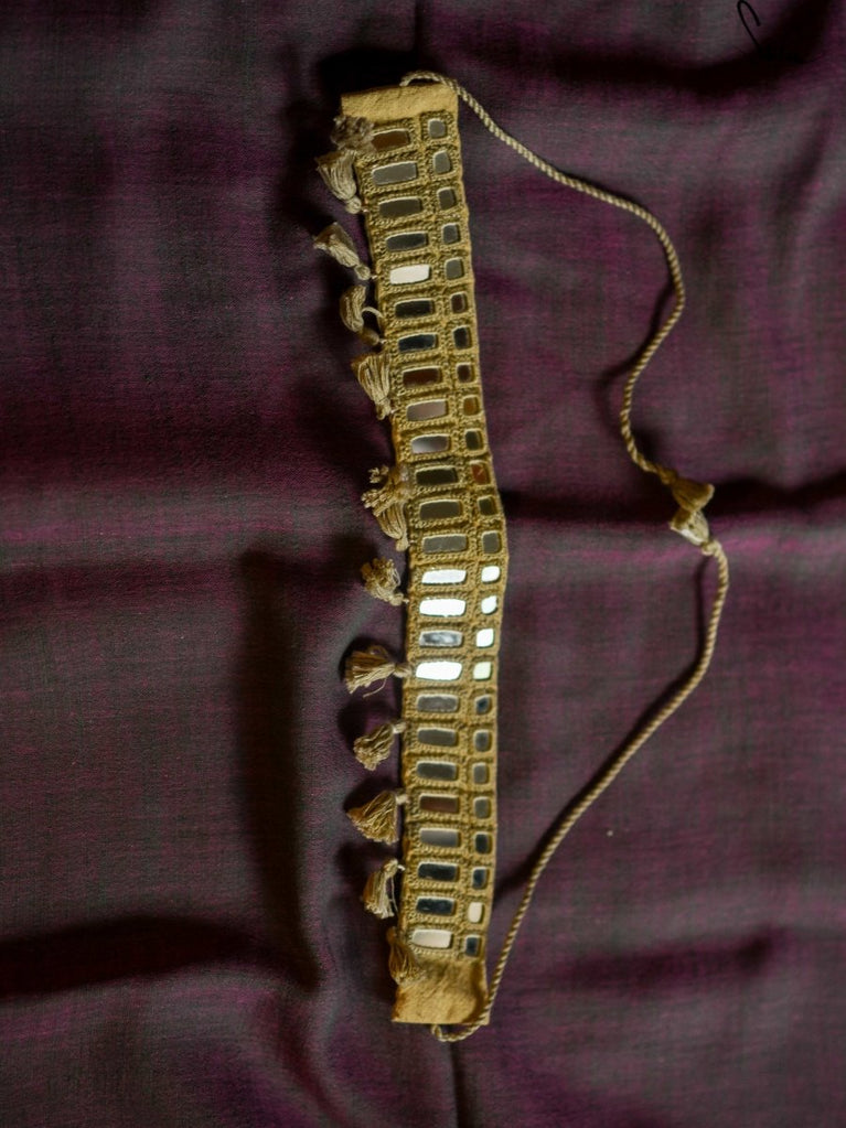 This is a hand-embroidered, handmade choker in a subtle beige colour with mirror work and soft cotton tassels. And, it exudes an earthy, powerful yet vulnerable vibe to perfectly match your spirit!