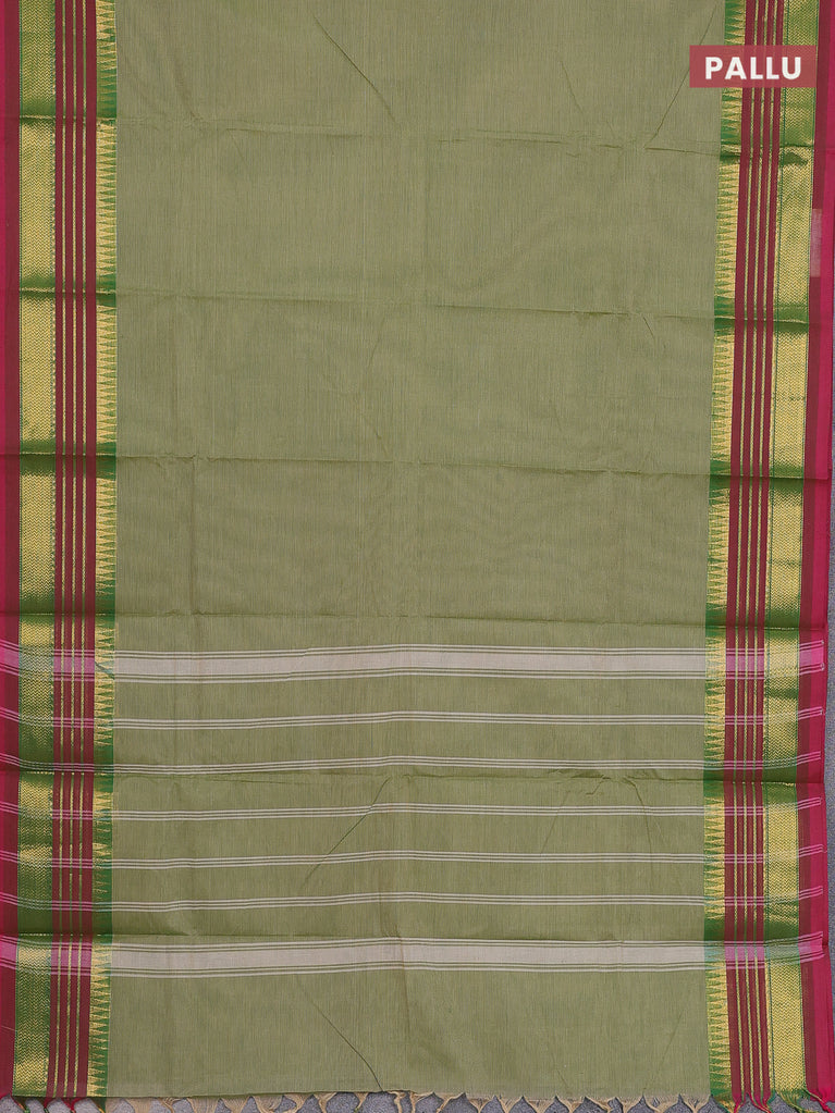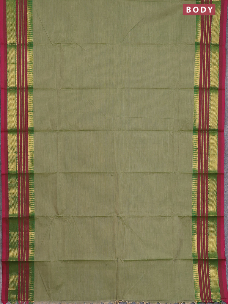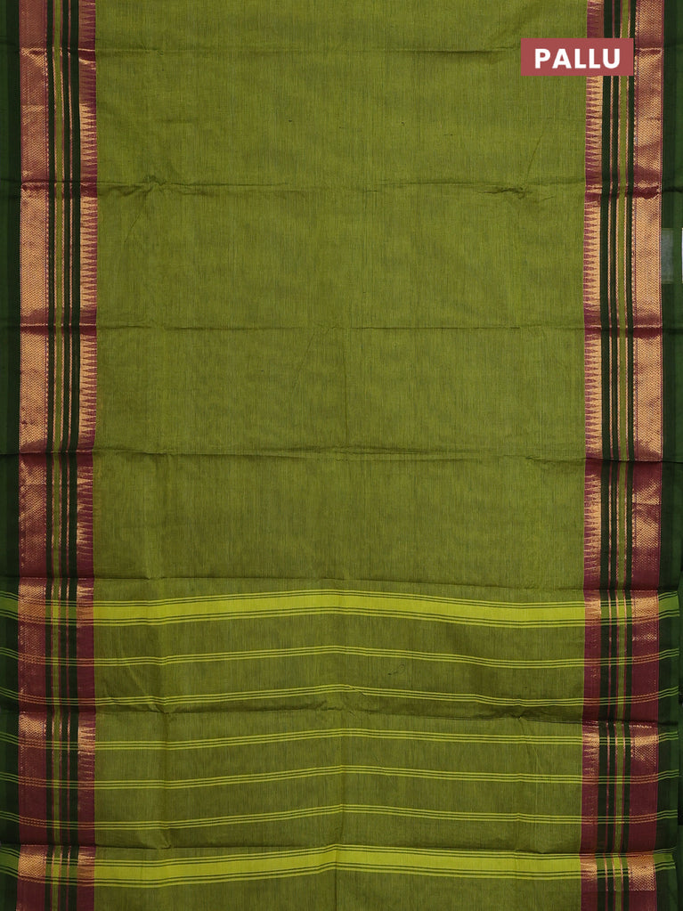 Chettinad cotton saree green and sap green pink with plain body and long zari woven border