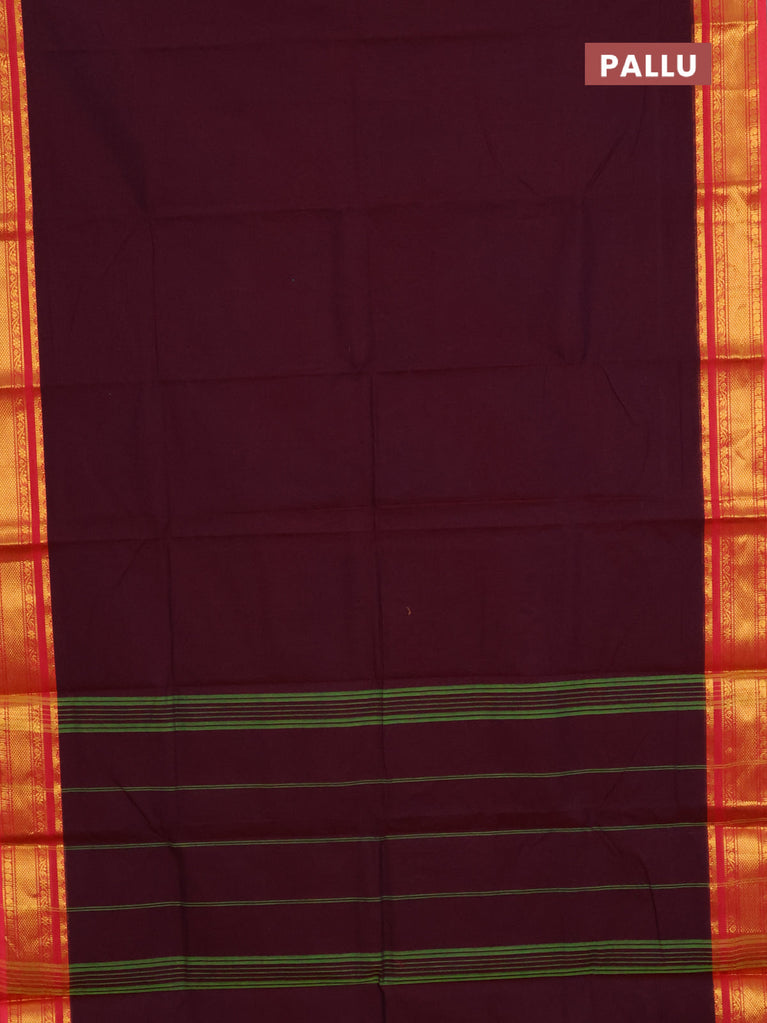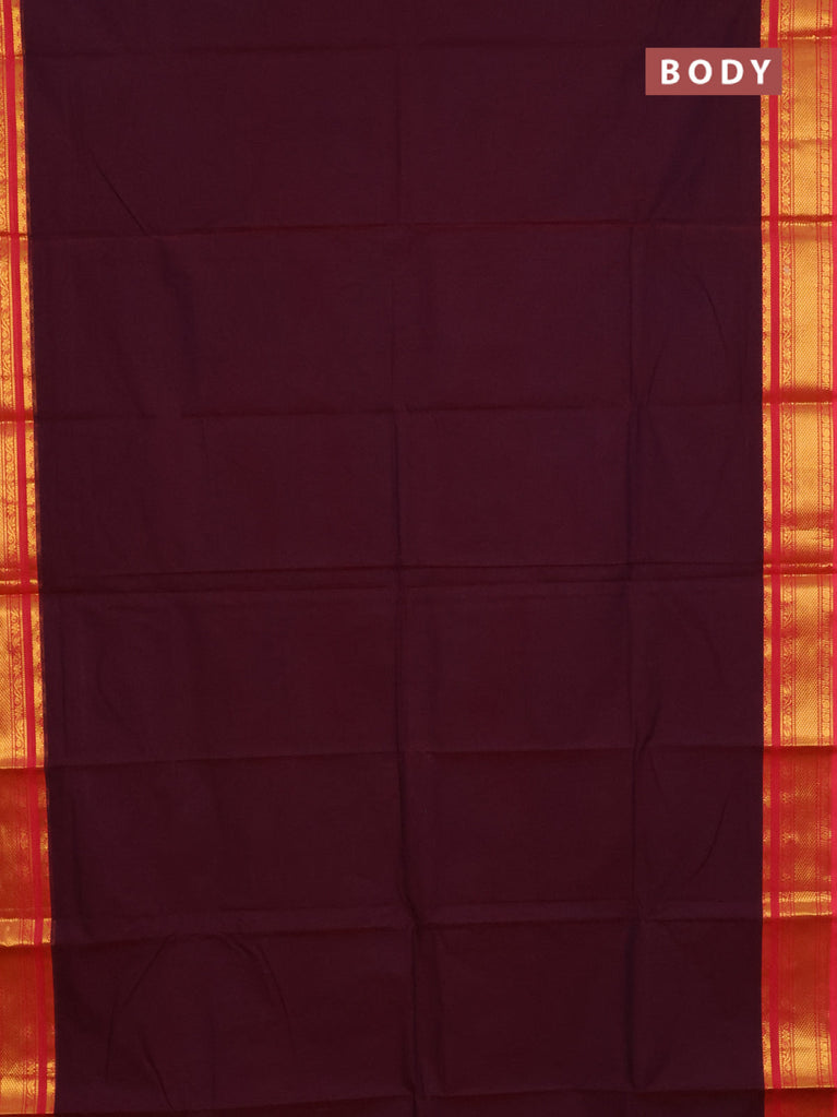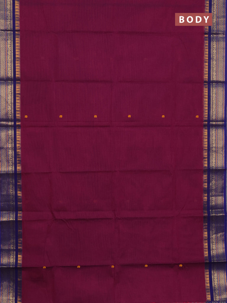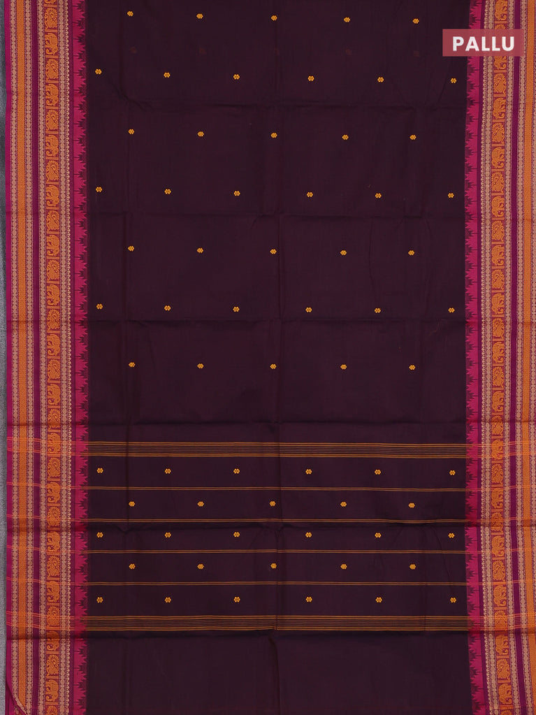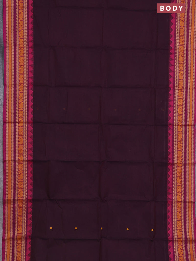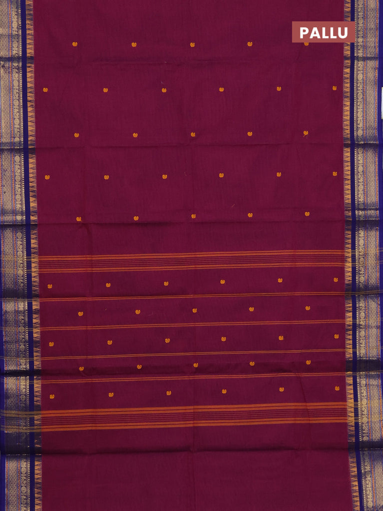 Chettinad cotton saree wine shade and dark voilet with thread woven buttas and temple disign zari woven border