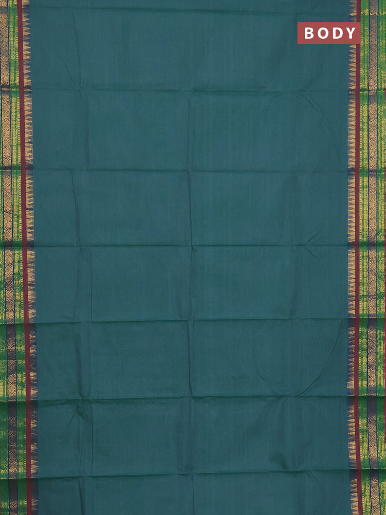 Chettinad cotton saree teal green and pink with thread woven buttas and zari woven border