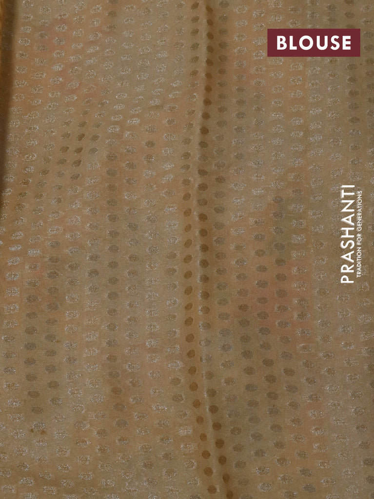 Chiffon silk saree pale orange with floral digital prints & silver zari buttas and silver zari woven border