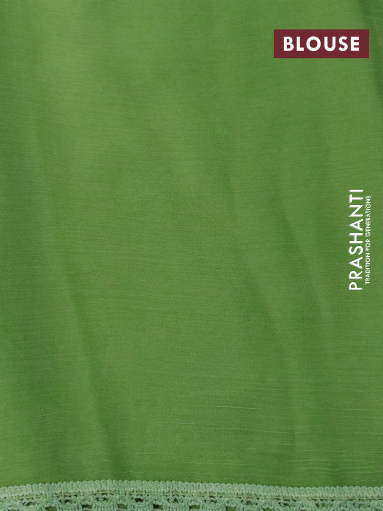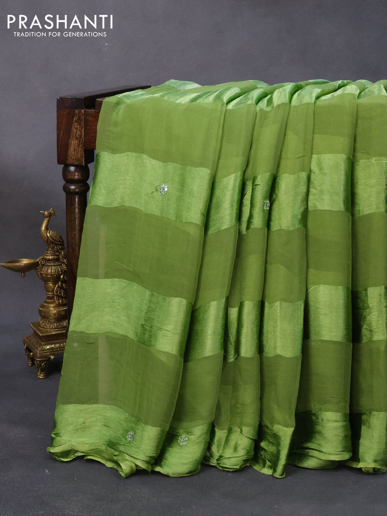 Chiffon silk saree pista green with satin finished in borderless style & embroidered readymade blouse