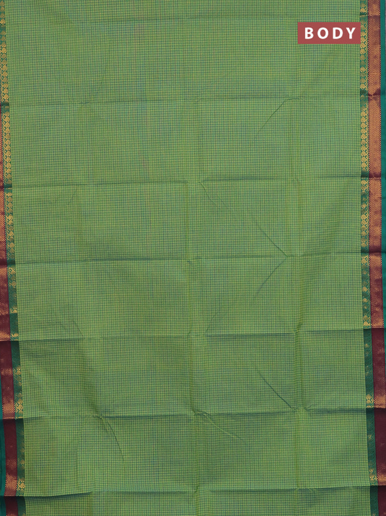 Chettinad cotton saree teal green with allover small checked pattern and zari woven border