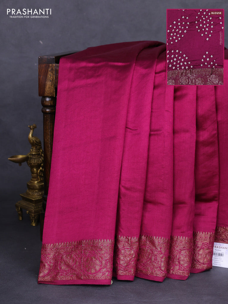 Chiniya silk saree purple and pink with allover bandhani prints & zari weaves and zari woven border