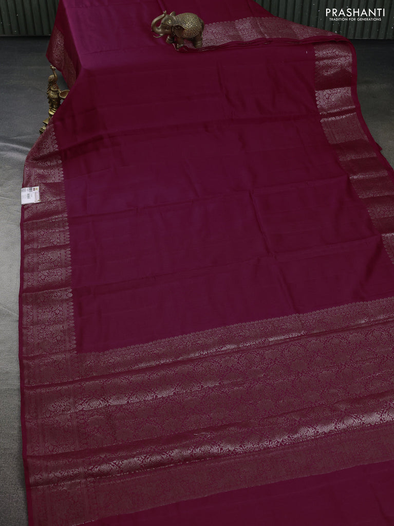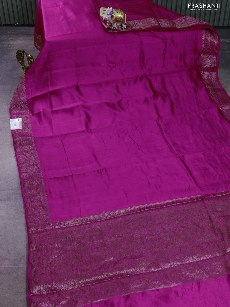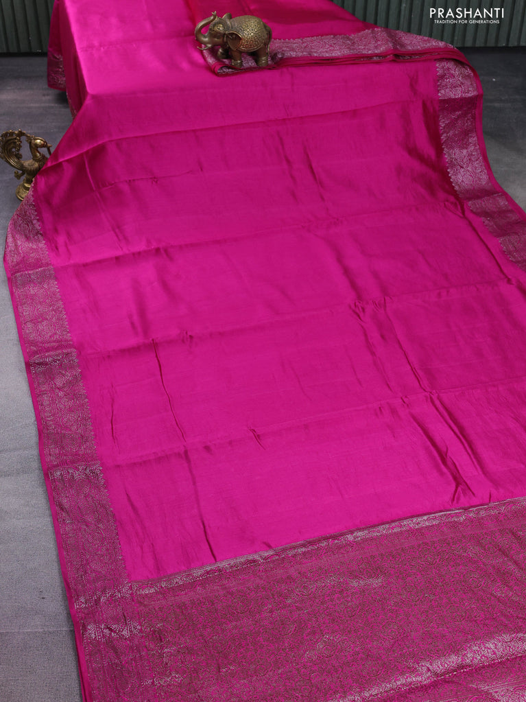 Chiniya silk saree magenta pink with plain body and woven border