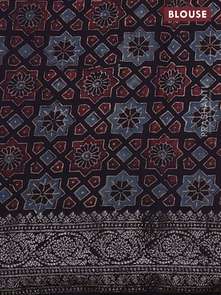 Chiniya silk saree maroon and deep jamun with plain body and woven border