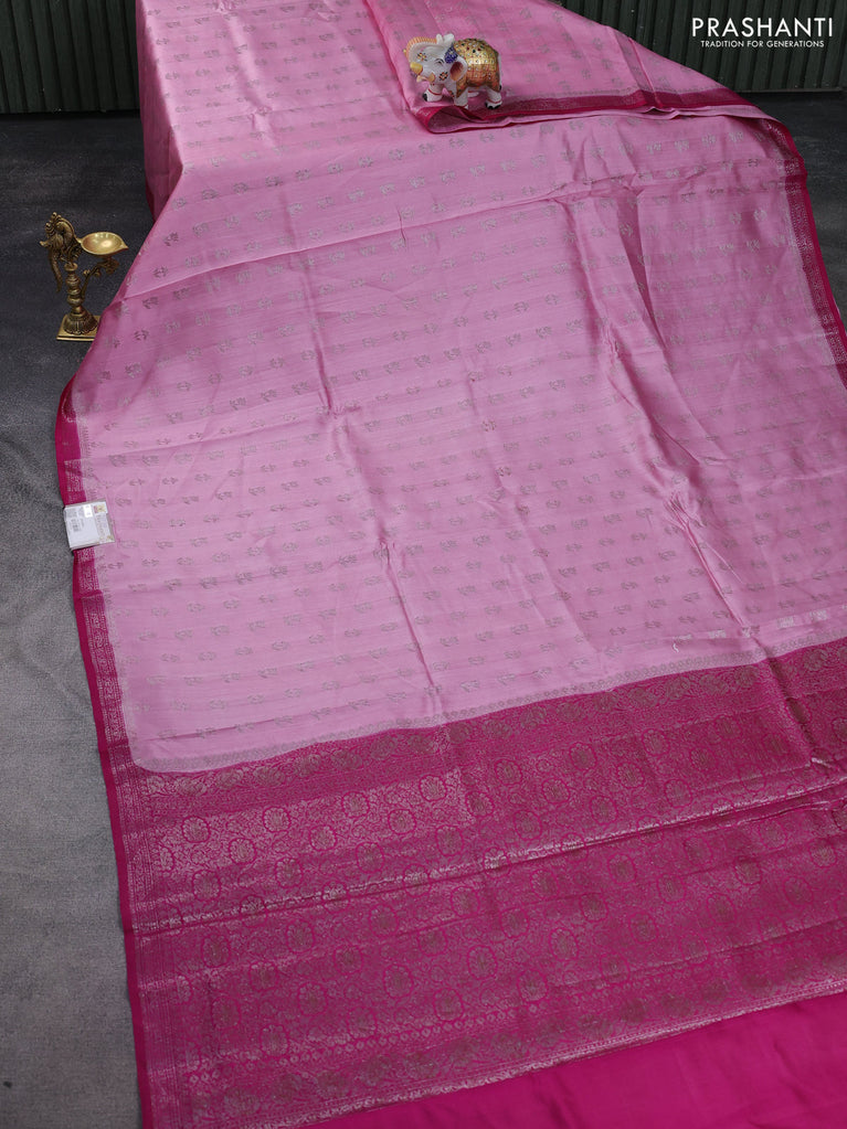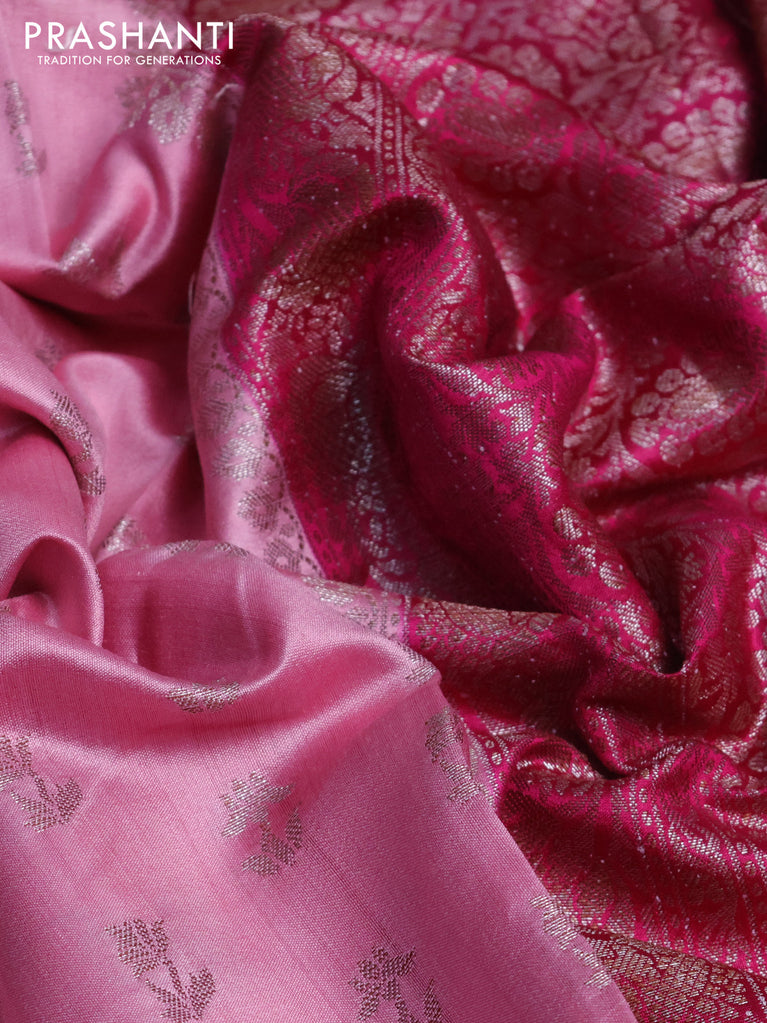 Chiniya silk saree light pink and pink with allover thread & zari woven buttas and banarasi style border