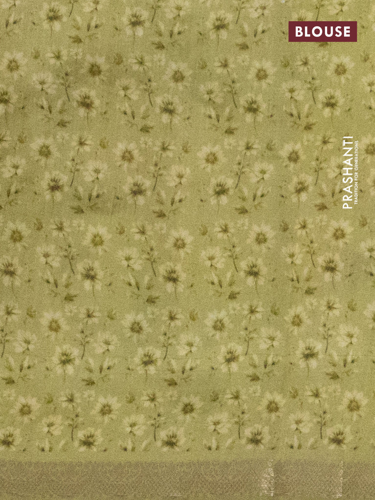 Chiniya silk saree lime green with zari woven buttas & floral digital prints and zari woven border