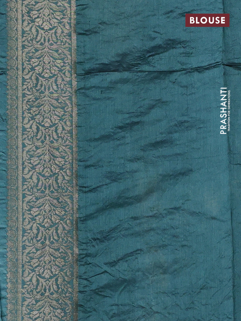 Chiniya silk saree pastel blue and teal green with allover zari buttas & bandhini prints and zari woven border