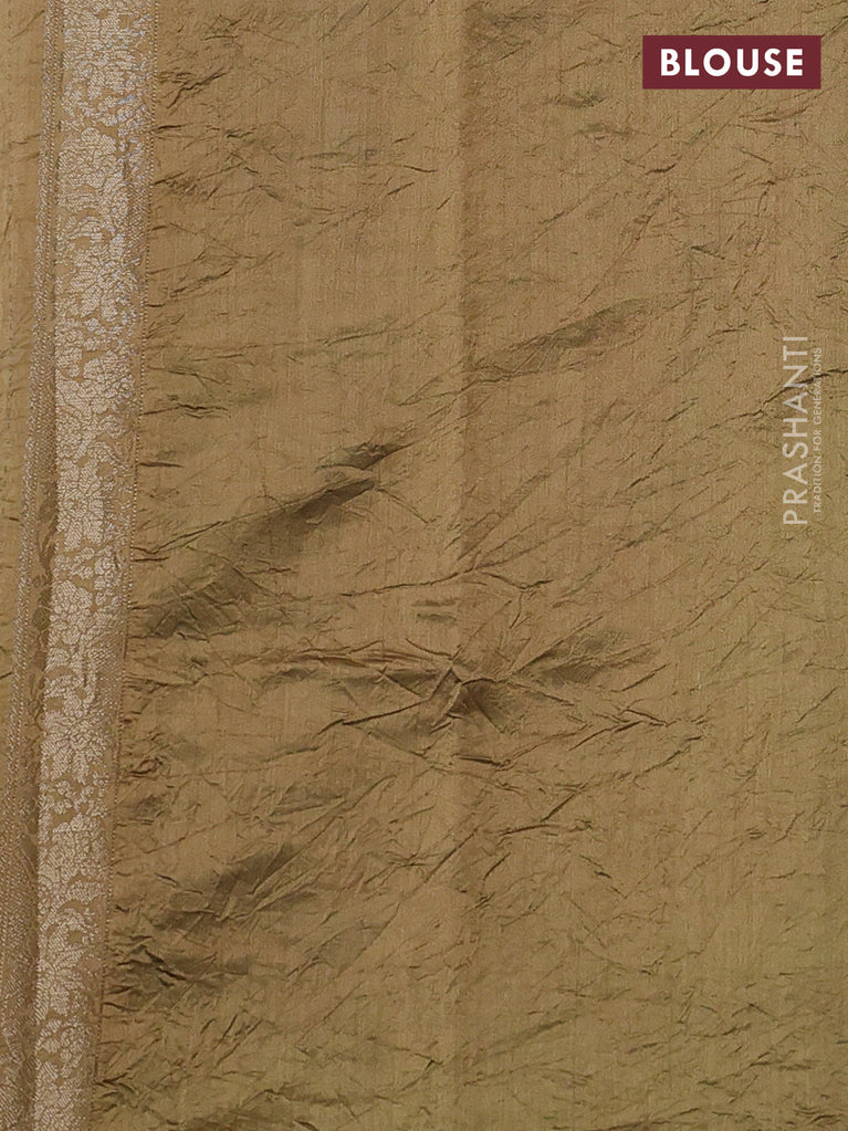 Chiniya silk saree off white and pastel green with allover silver zari buttas & digital prints and zari woven border