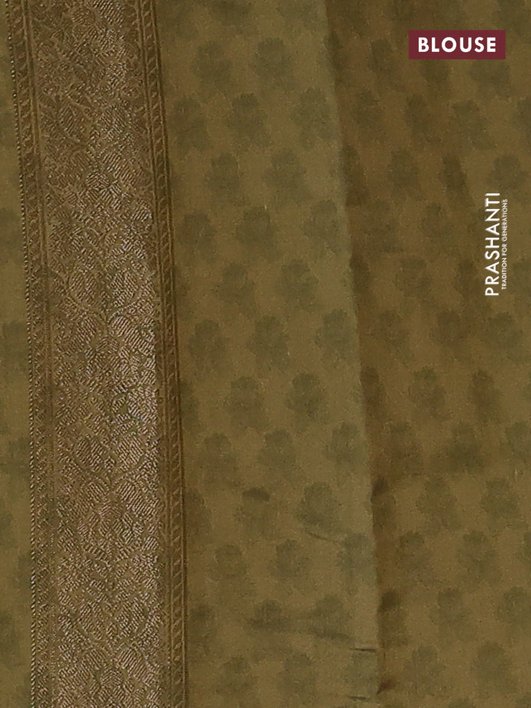 Chiniya silk saree pale yellow and elaichi green with allover woven buttas & digital prints and banarasi style border
