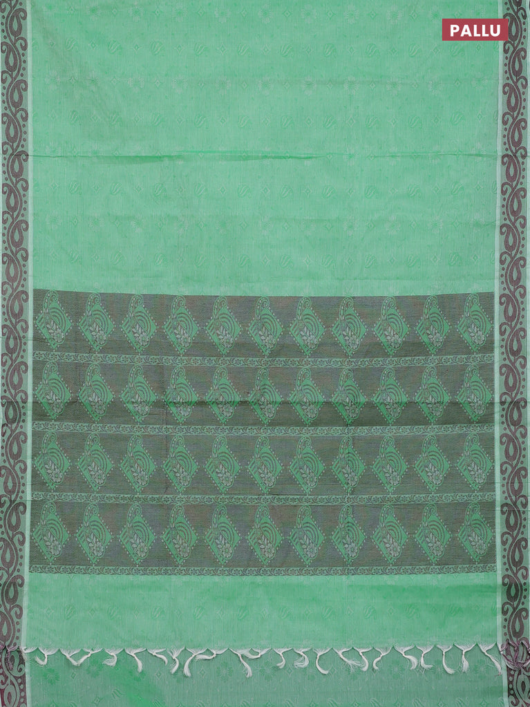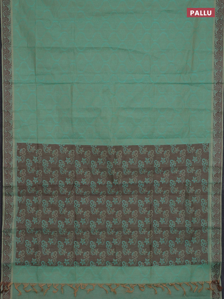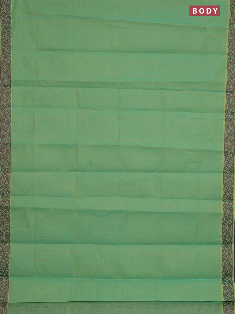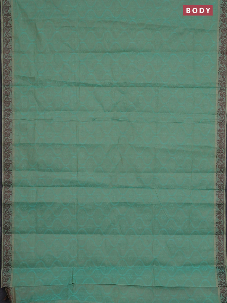 Coimbatore cotton saree dual shade of teal bluish green and coffee brown with allover self emboss and thread woven border