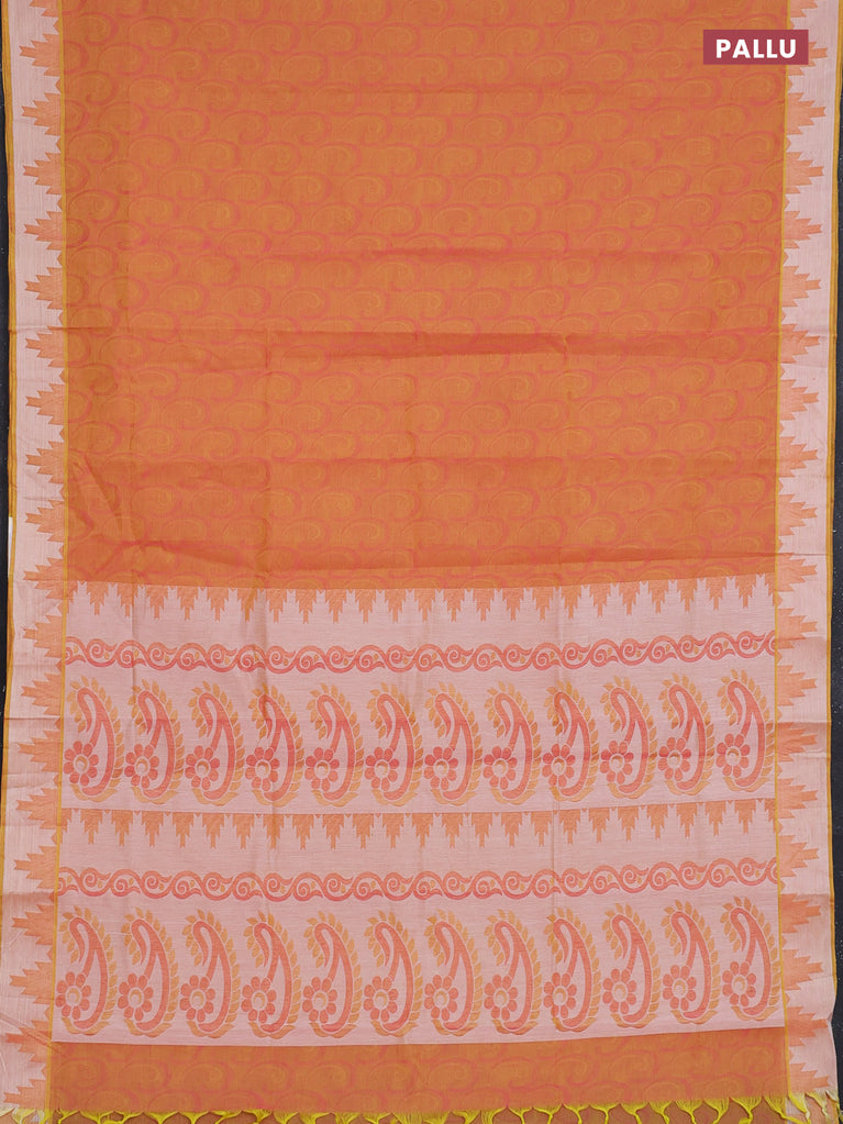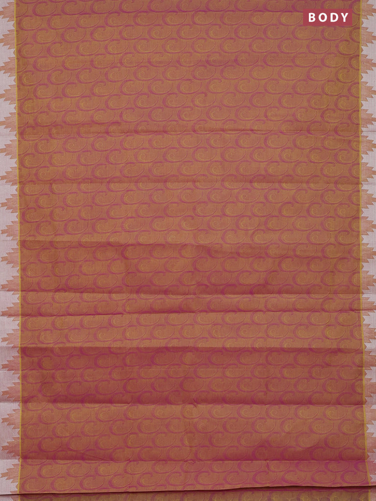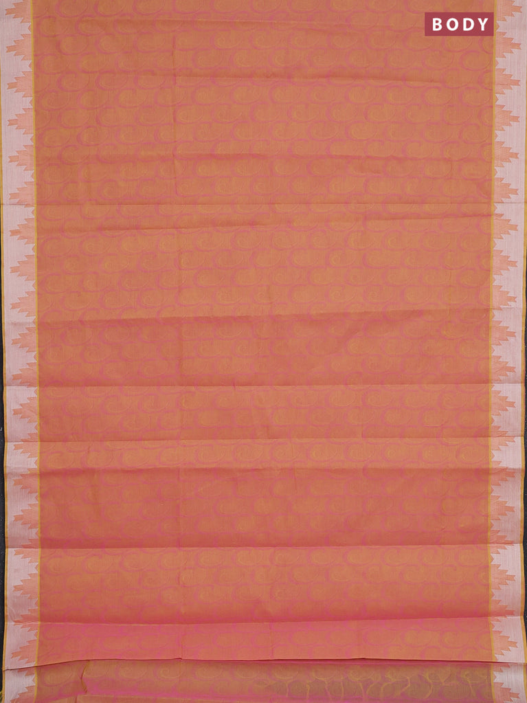 Coimbatore cotton saree dual shade of yellowish pink with allover self emboss and thread woven border