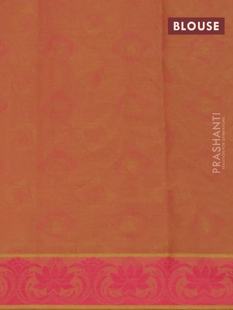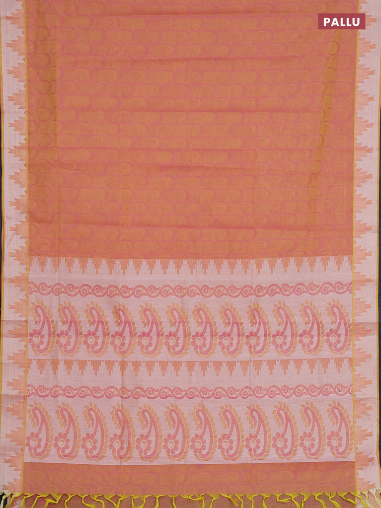 Coimbatore cotton saree dual shade of yellowish light pink with allover self emboss and thread woven border