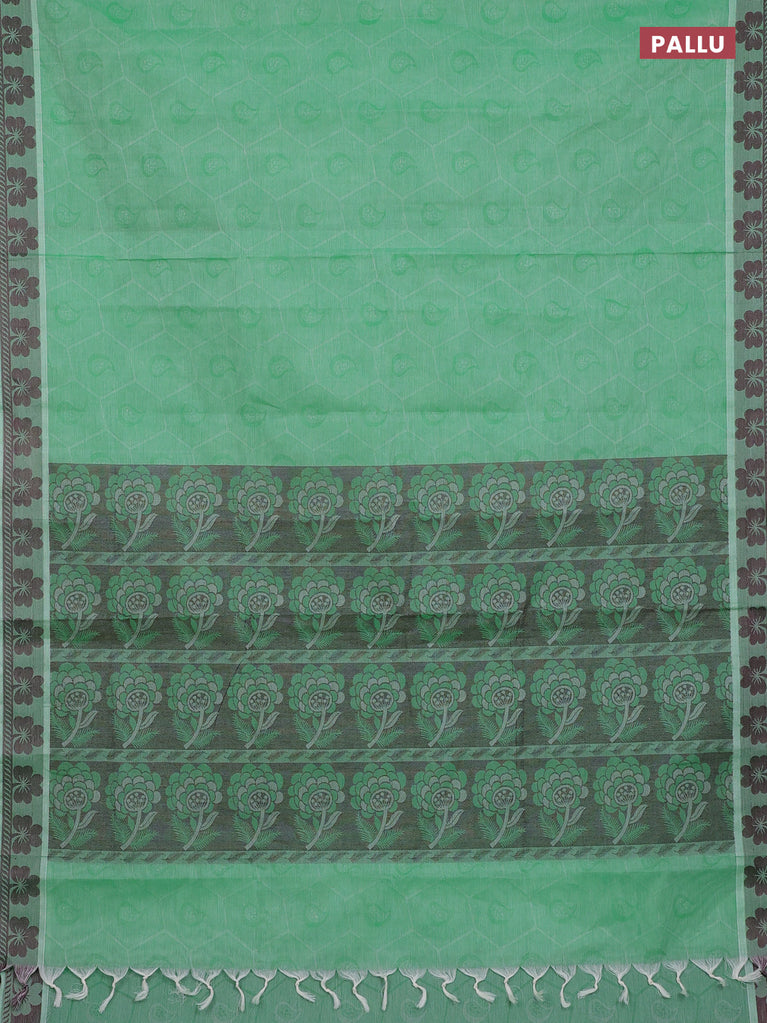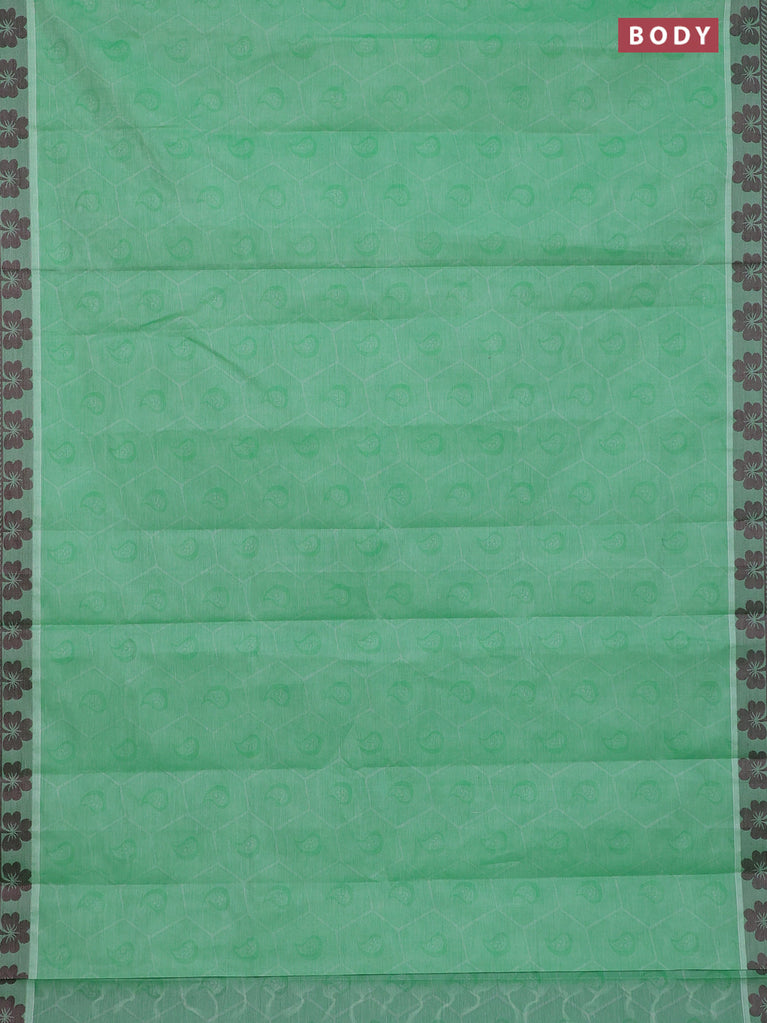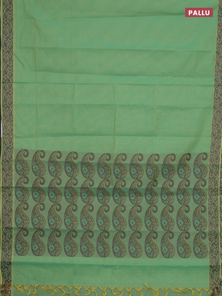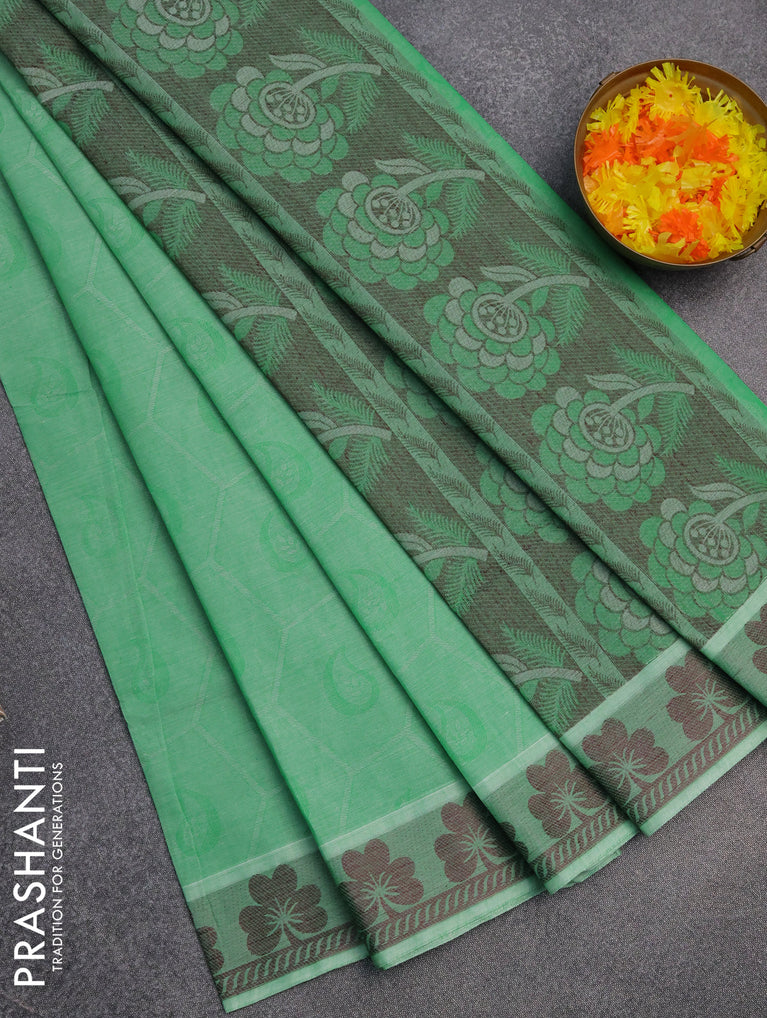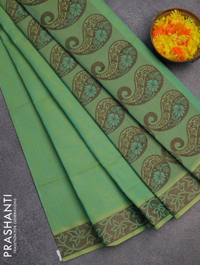 Coimbatore cotton saree green and sandal with allover self emboss and thread woven border