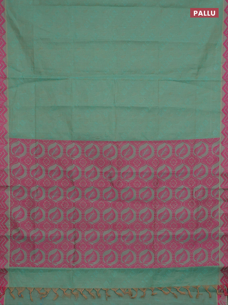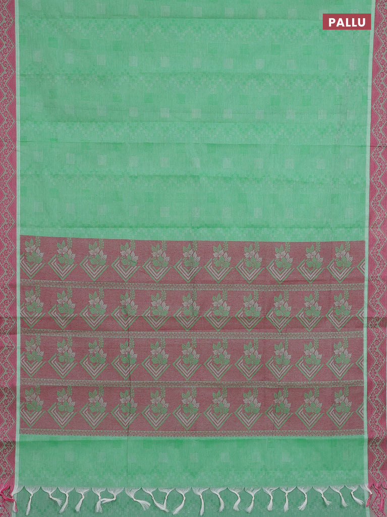 Coimbatore cotton saree green and pink with allover self emboss and thread woven border