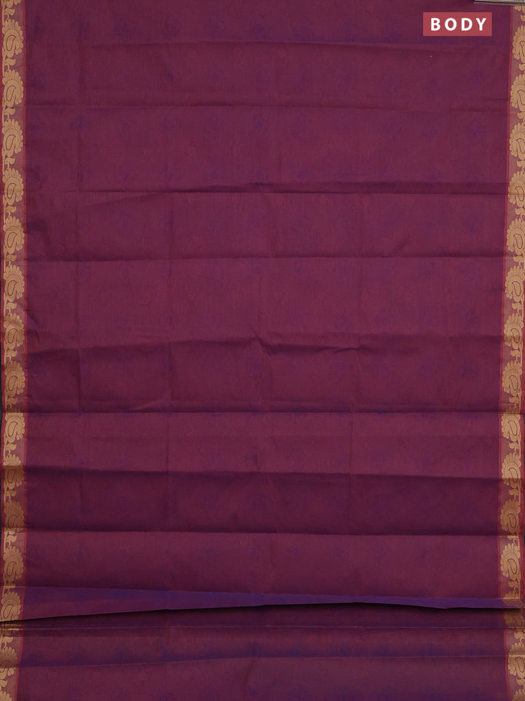 Coimbatore cotton saree dual shade of purple with allover self emboss and thread woven border