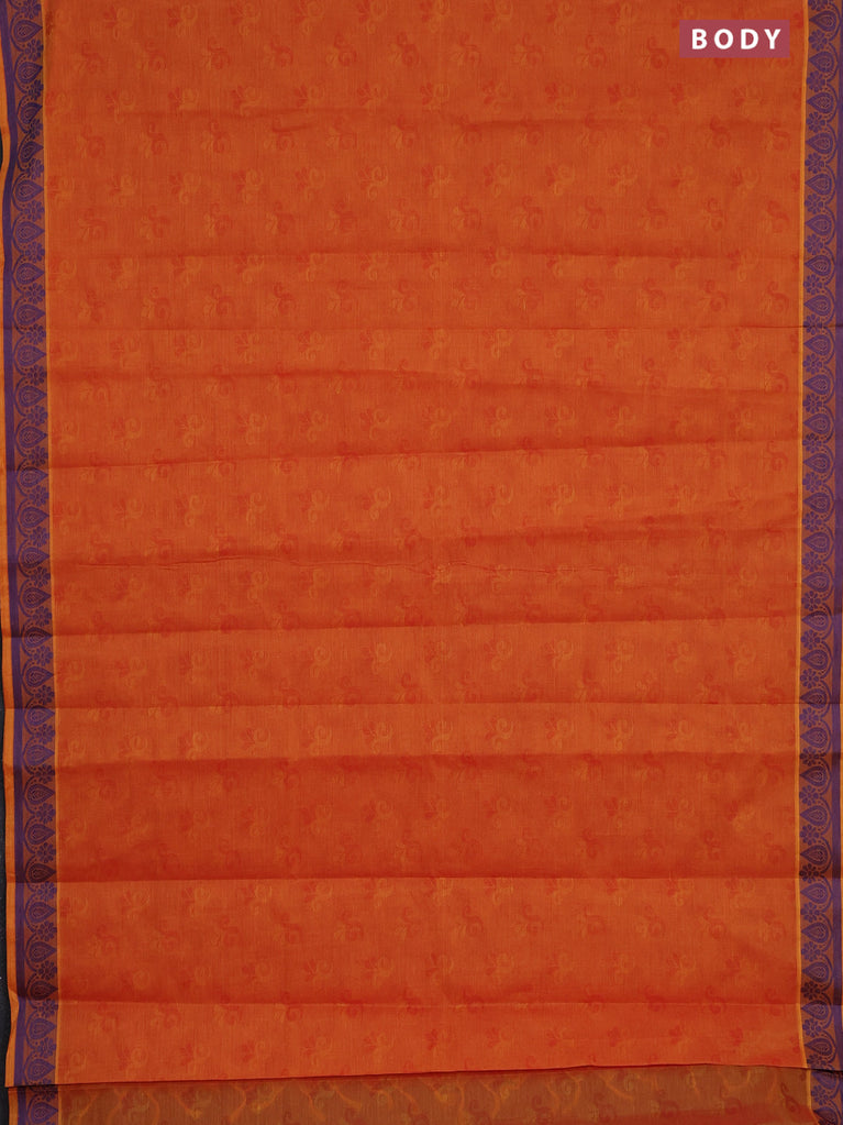 Coimbatore cotton saree dual shade of sunset orange and blue with allover self emboss and thread woven border