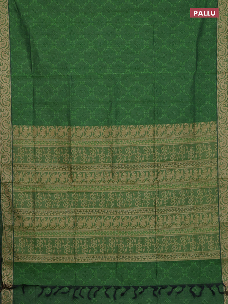 Coimbatore cotton saree green and deep maroon with allover self emboss and thread woven border