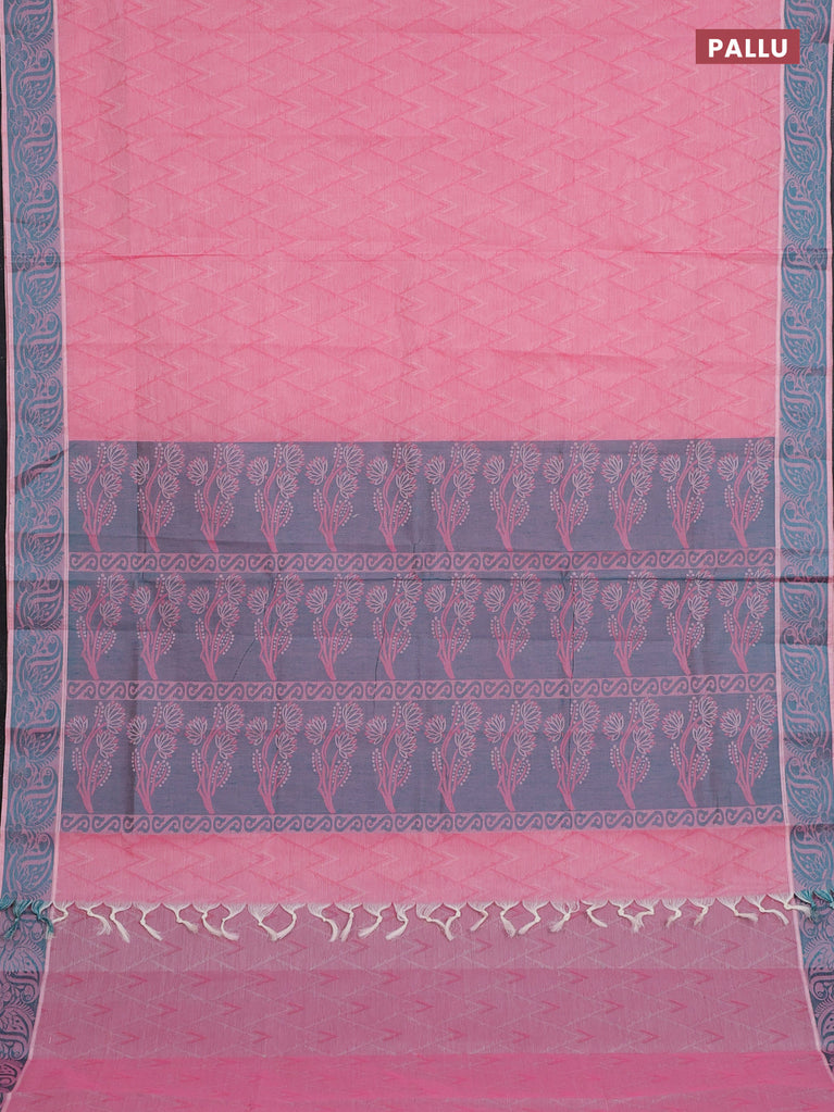 Coimbatore cotton saree pastel pink and maroon with allover self emboss and thread woven border