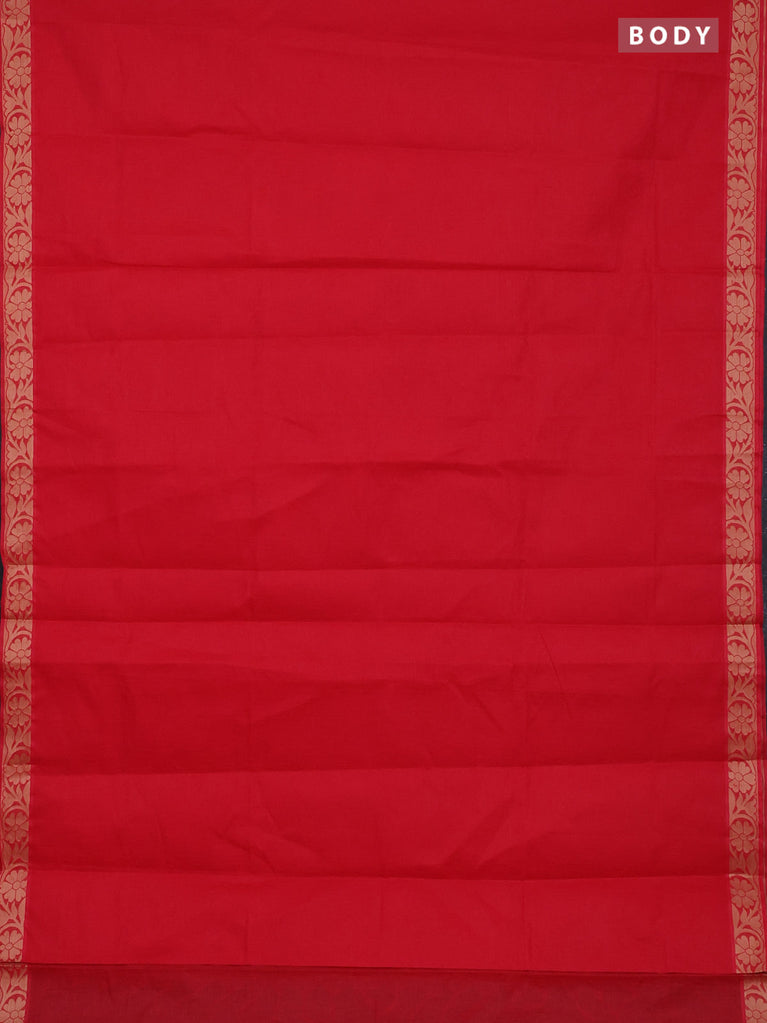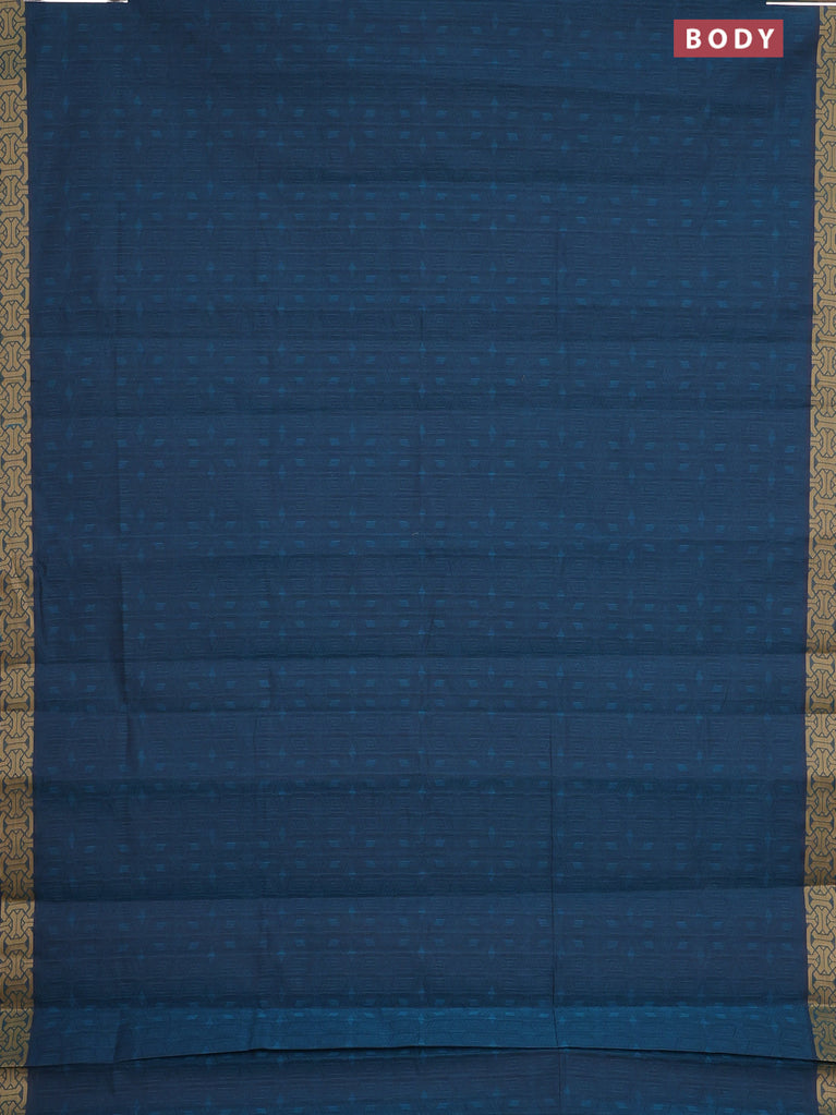Coimbatore cotton saree peacock blue and sandal with allover self emboss and thread woven border