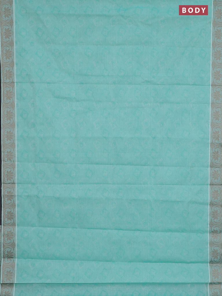 Coimbatore cotton saree mild teal green and beige with allover self emboss and thread woven border
