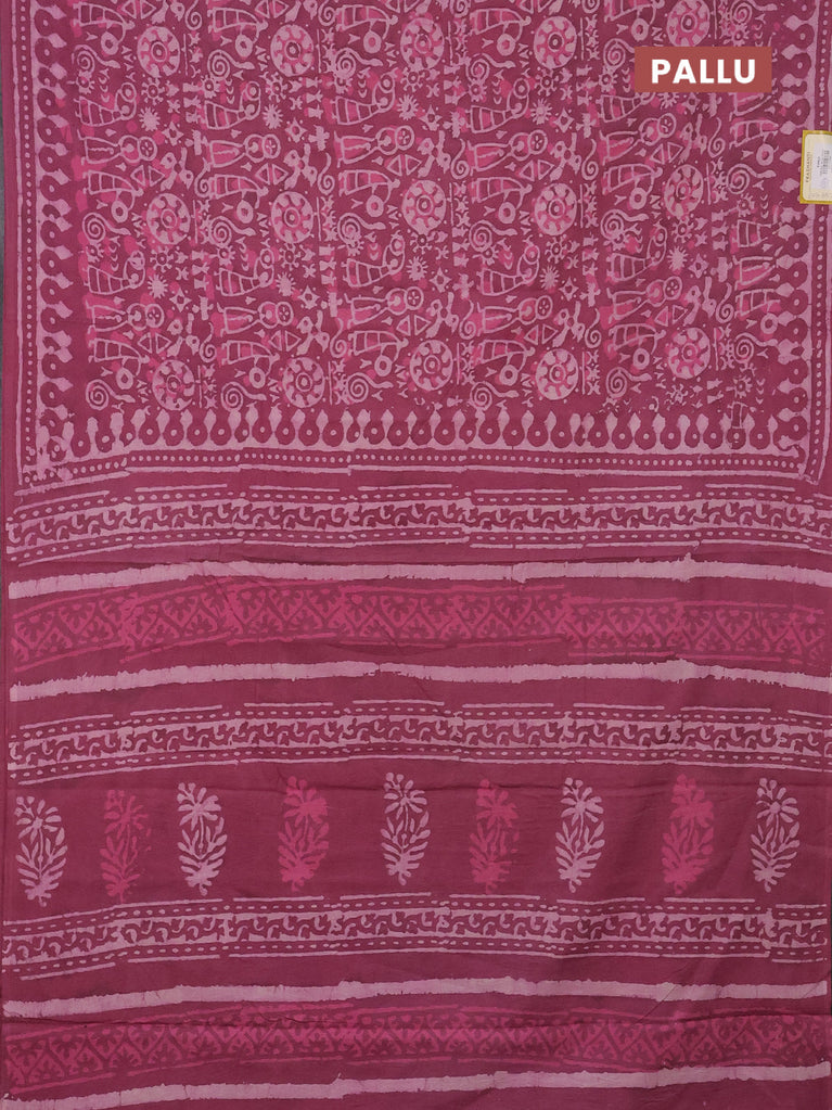 Jaipur cotton saree mauve pink with allover batik prints and printed border