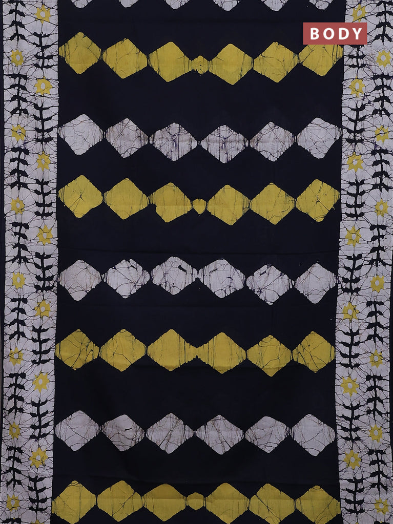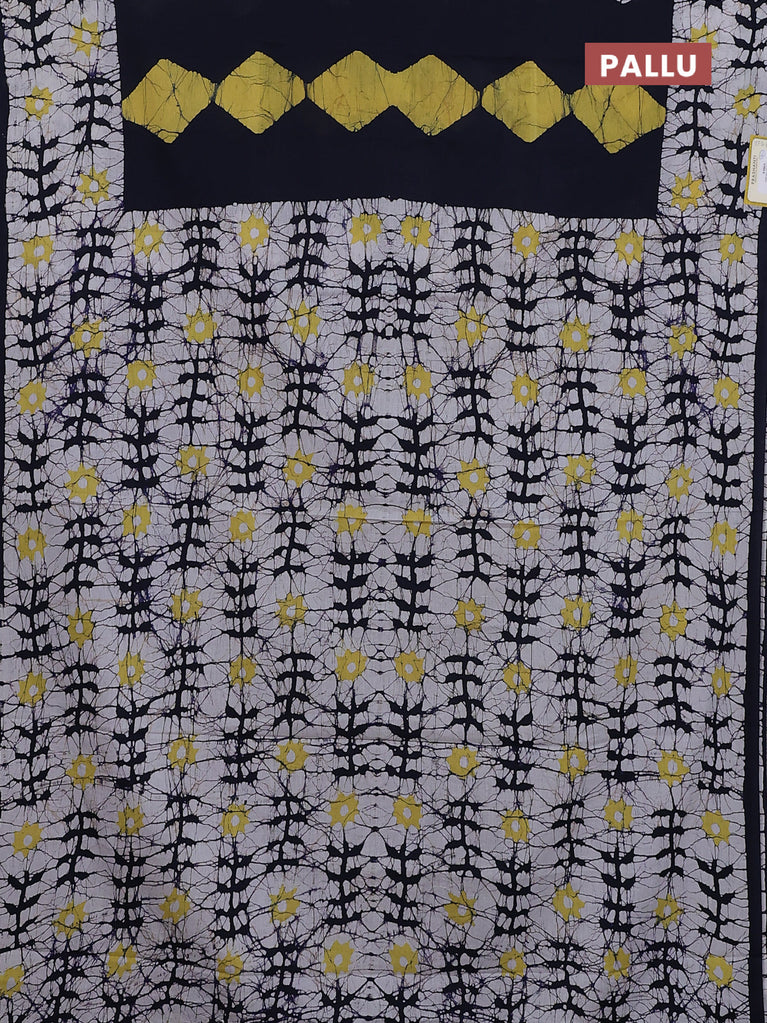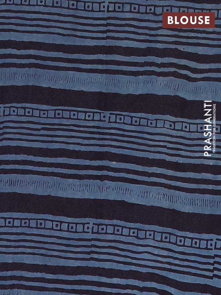 Jaipur cotton saree navy blue and off white with allover batik prints and printed border