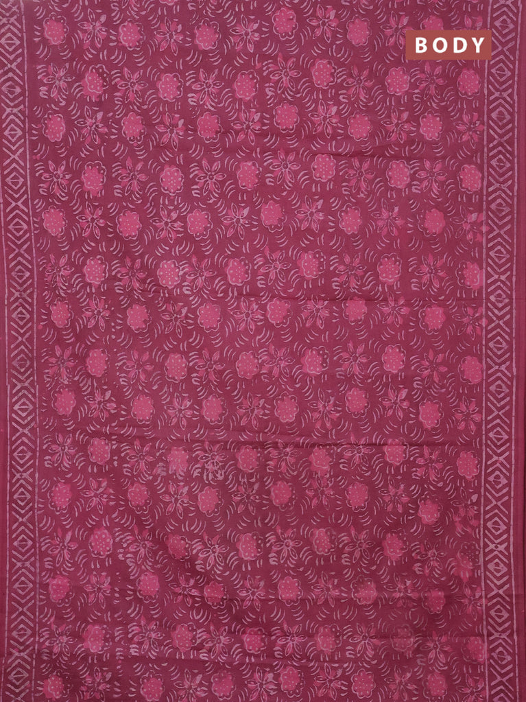 Jaipur cotton saree marron with batik prints and printed border