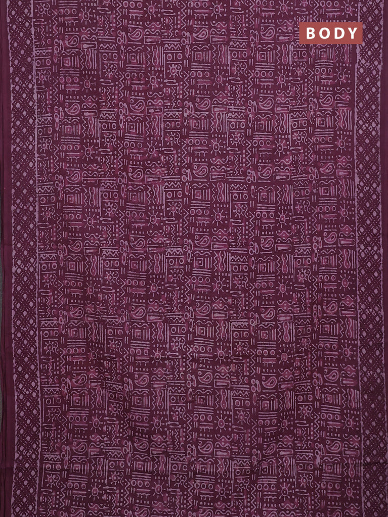 Jaipur cotton saree marron and off white with allover batik prints in borderless style