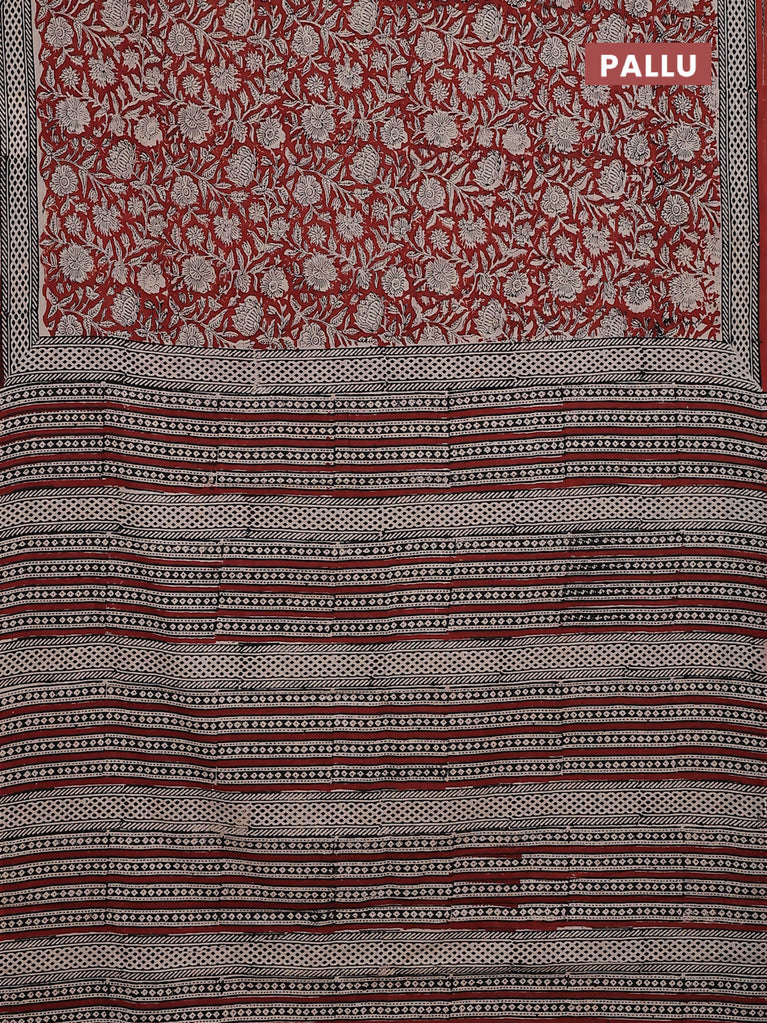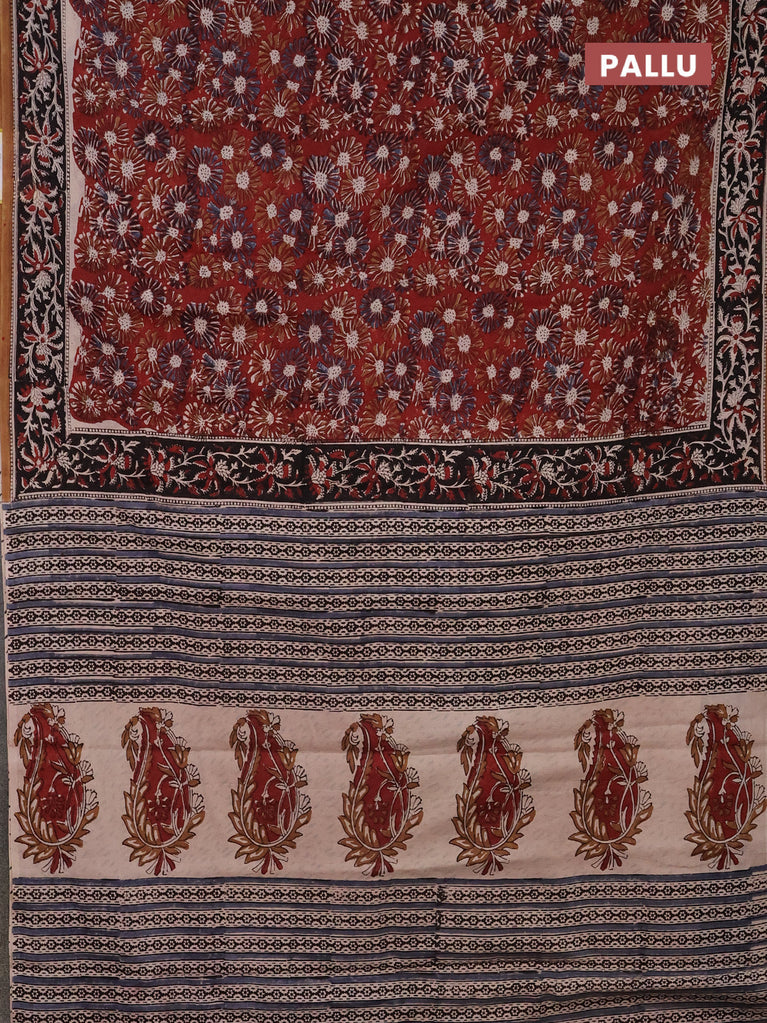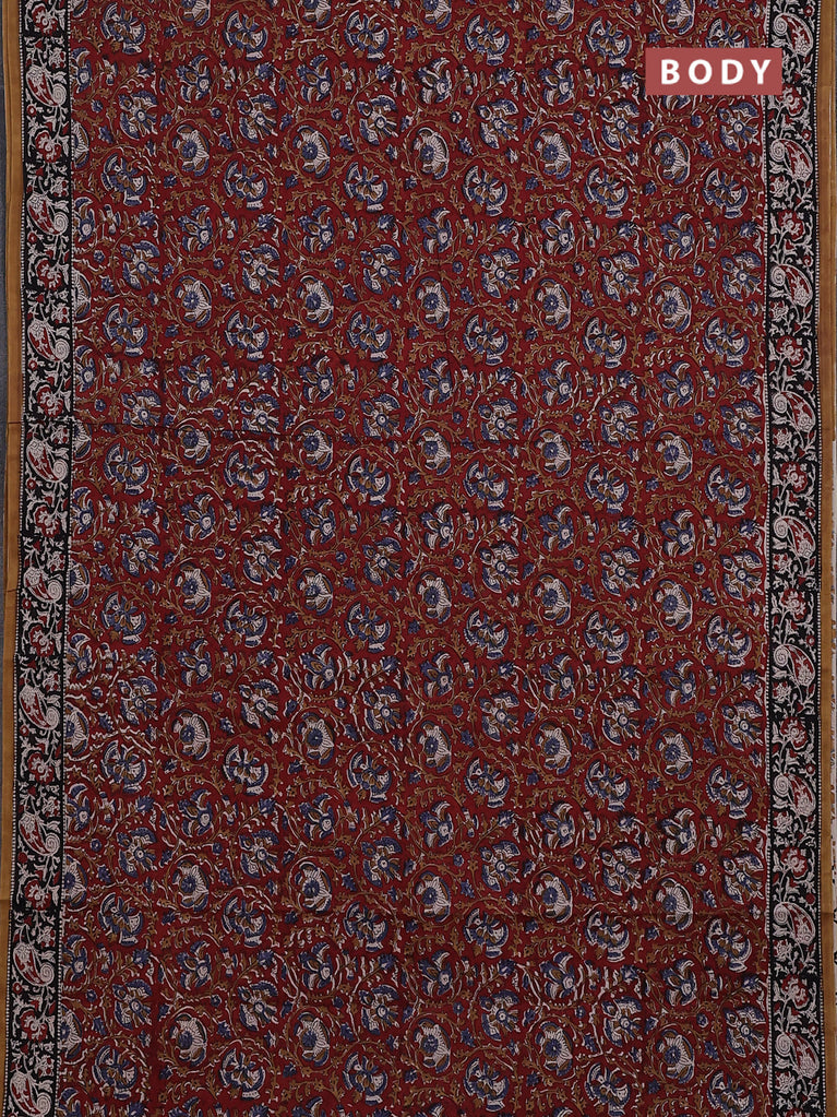 Jaipur cotton saree marron and black with allover kalamkari prints and printed border