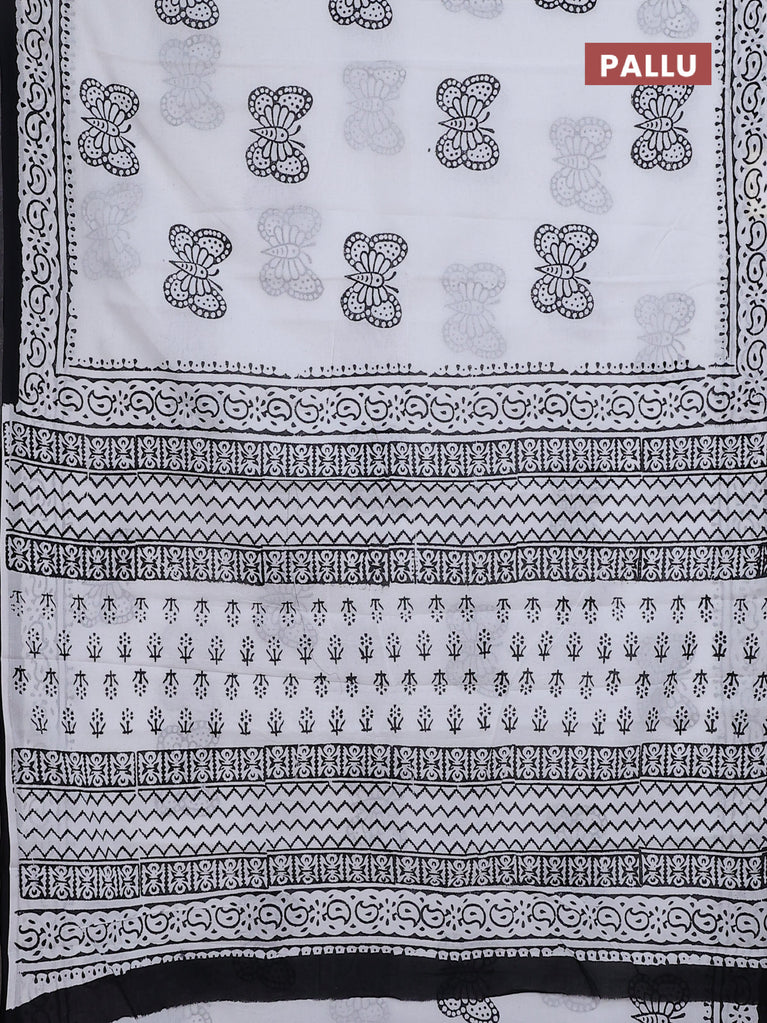 Jaipur cotton saree off white and black with butterfly butta prints and printed border