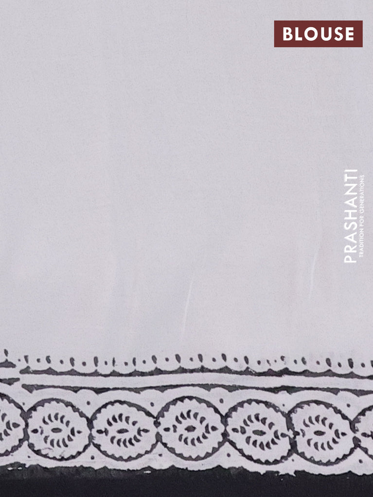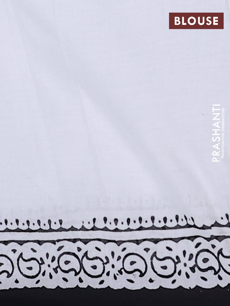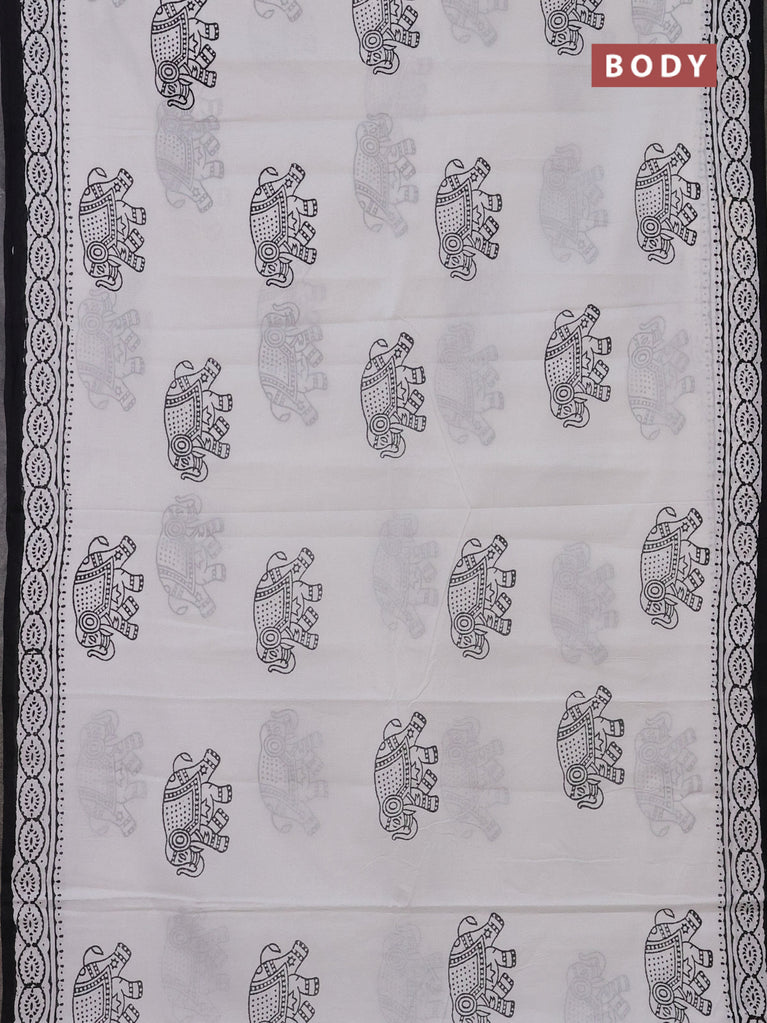 Jaipur cotton saree off white and black with elephant butta prints and printed border