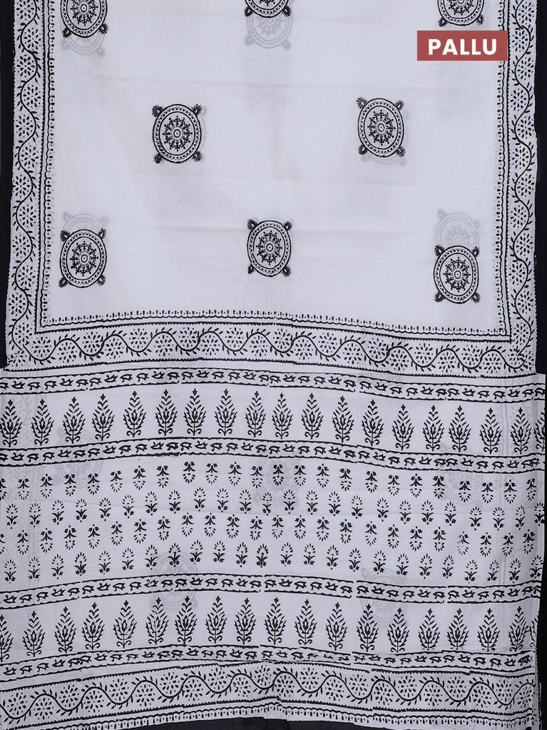 Jaipur cotton saree off white and black with warli butta prints and printed border