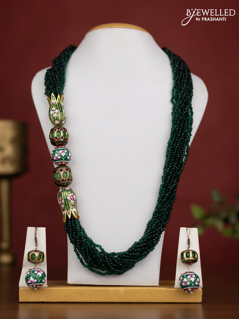 Jaipur crystal dark green and meenakari beads necklace with earrings