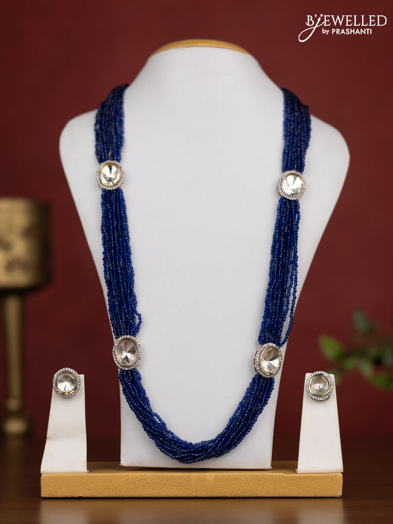Jaipur crystal dark blue and cz stone necklace with earrings