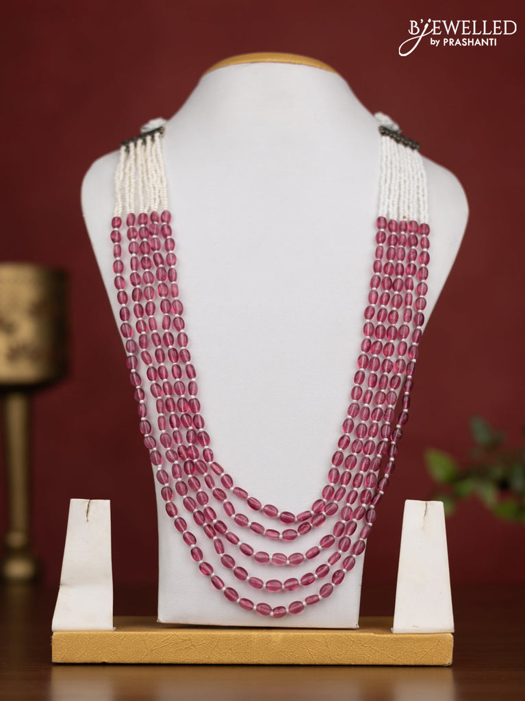 Jaipur crystal white and wine half and half beaded necklace with earrings