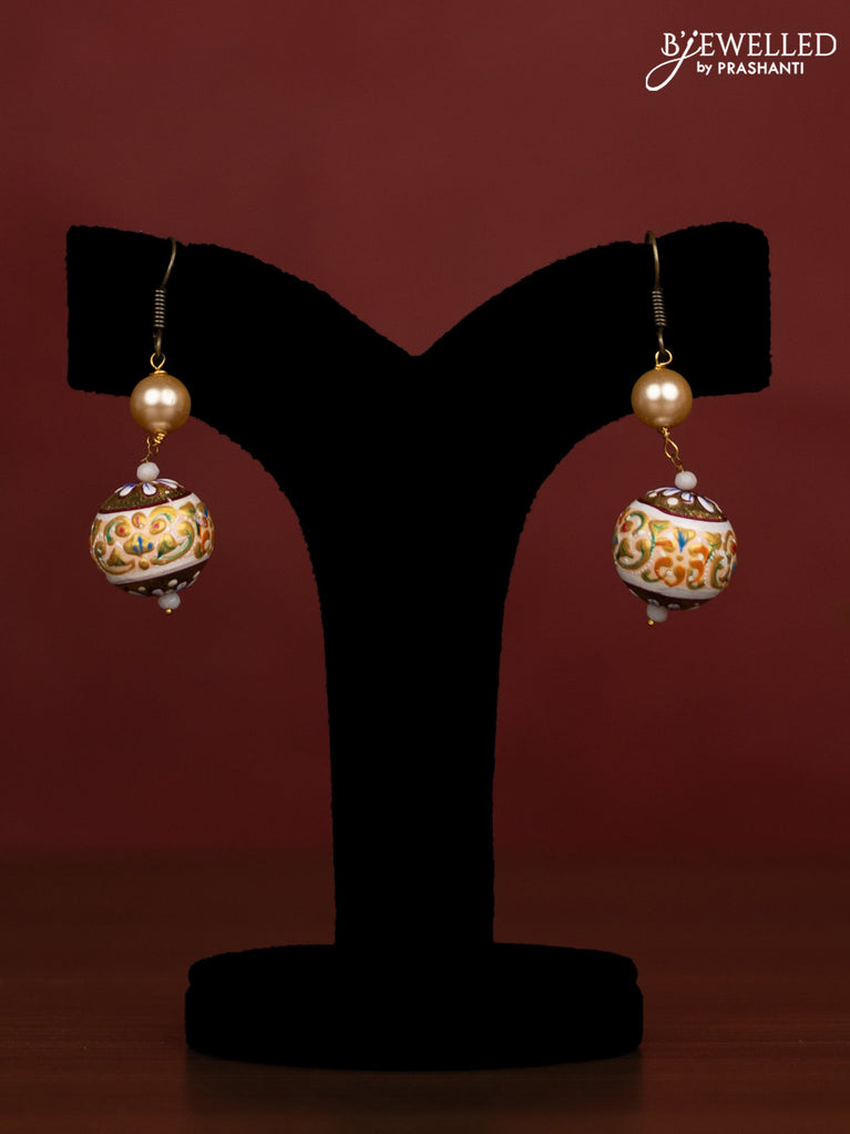 Jaipur crystal yellow and meenakari balls beaded necklace with earrings