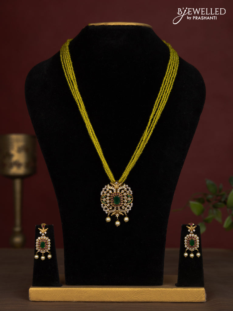 Jaipur crystal beaded multilayer yellow necklace with lakshmi pendant
